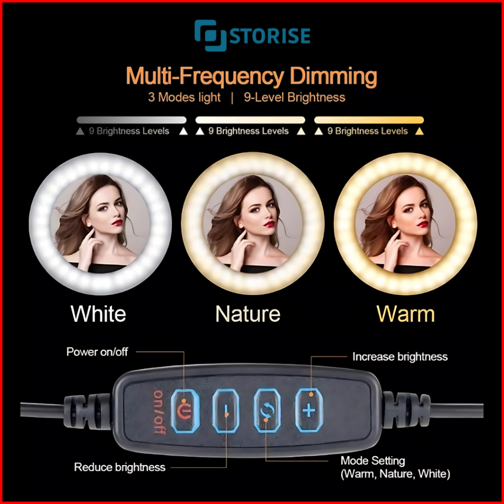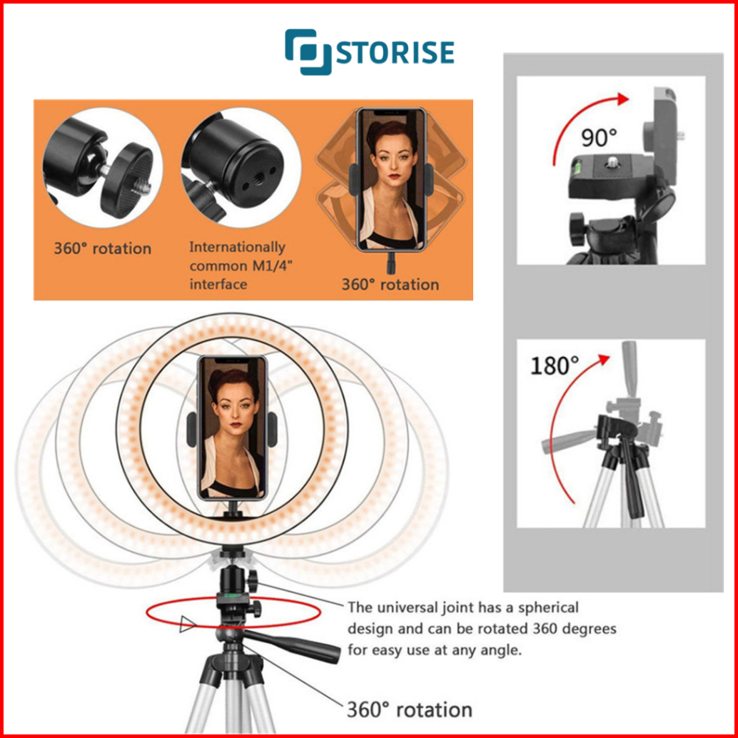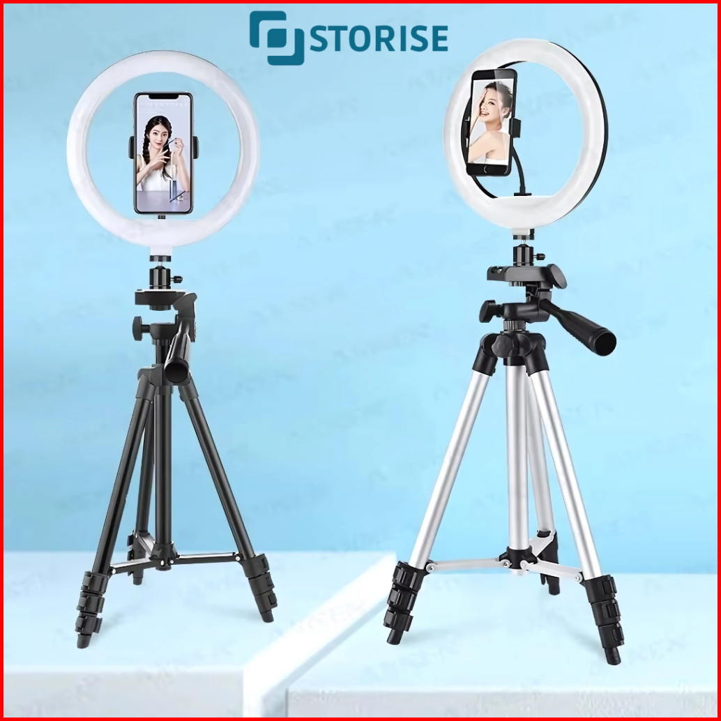 Storise Paket Komplit Tripod 1 Meter Ring Light 26 Cm Stand Hp Stream Selfie Make Up Vlog Lampu
