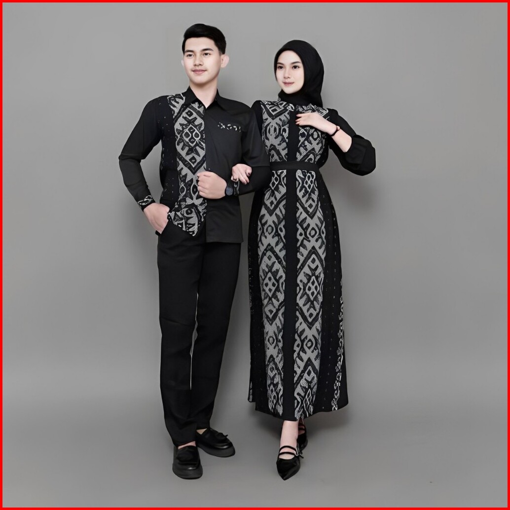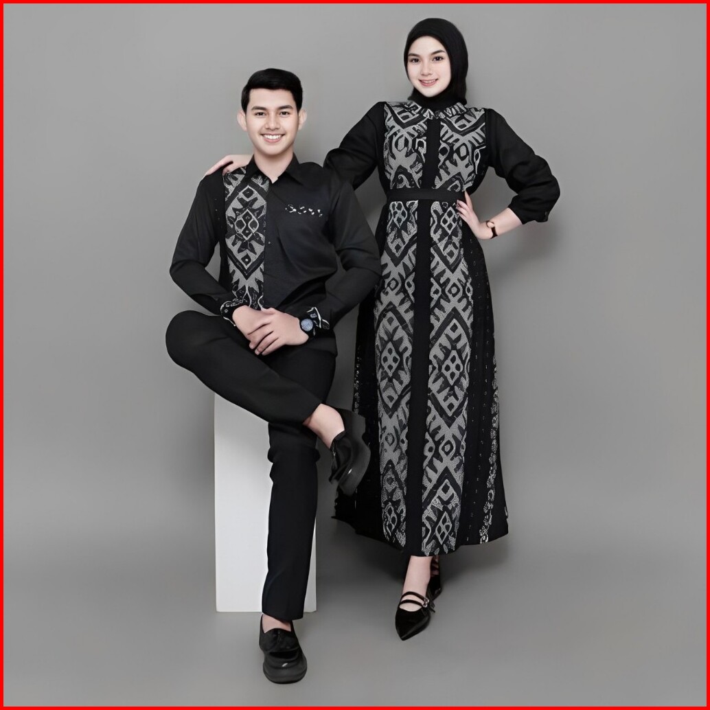 Baju Couple Tenun Batik Elegan Pria Wanita Gamis Tunangan Kondangan Lebaran Modern Terbaru
