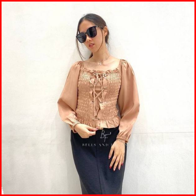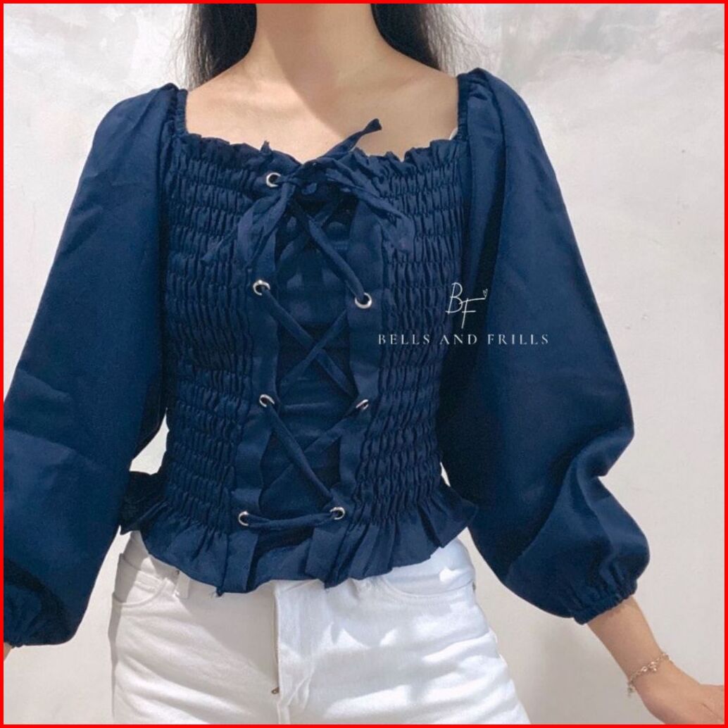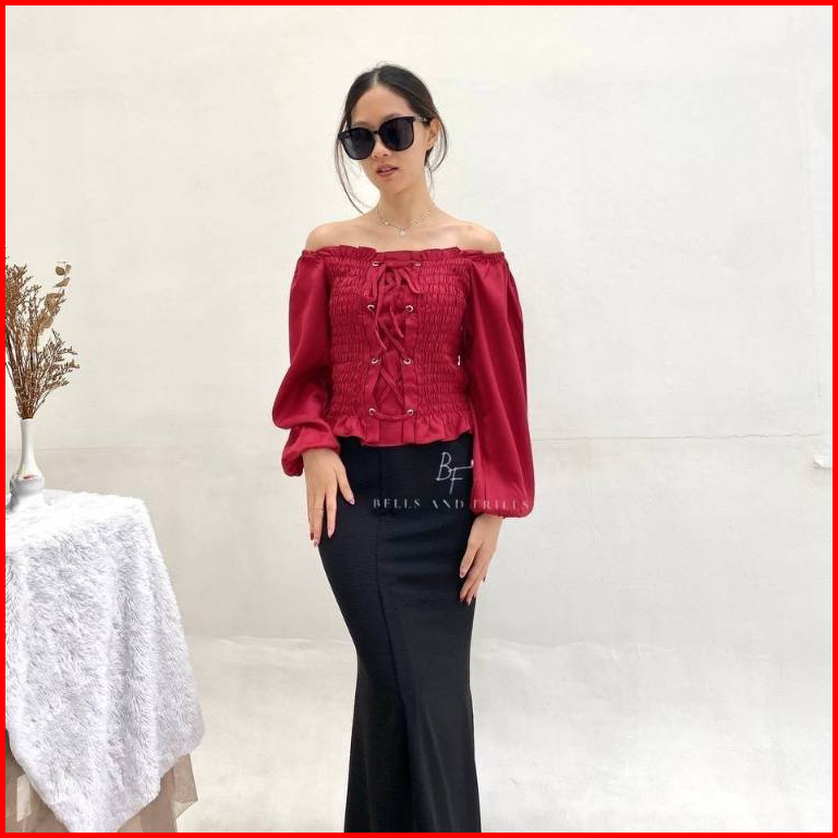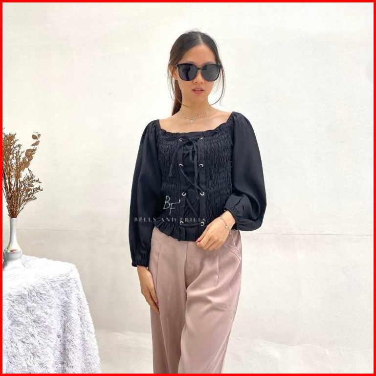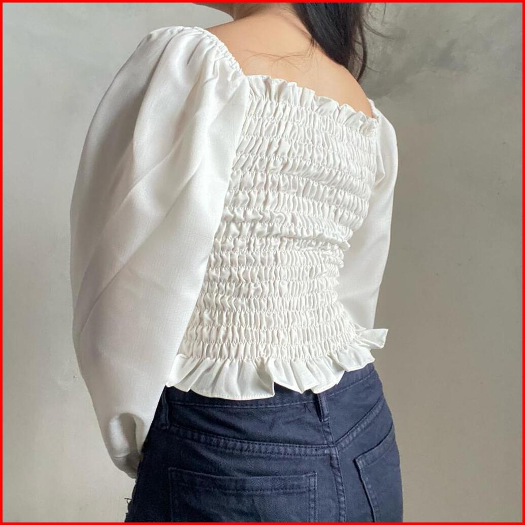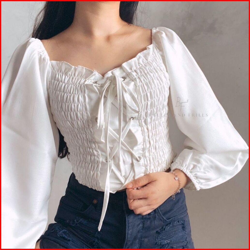 Haneul White Blouse Sabrina Lace Long Sleeve Top