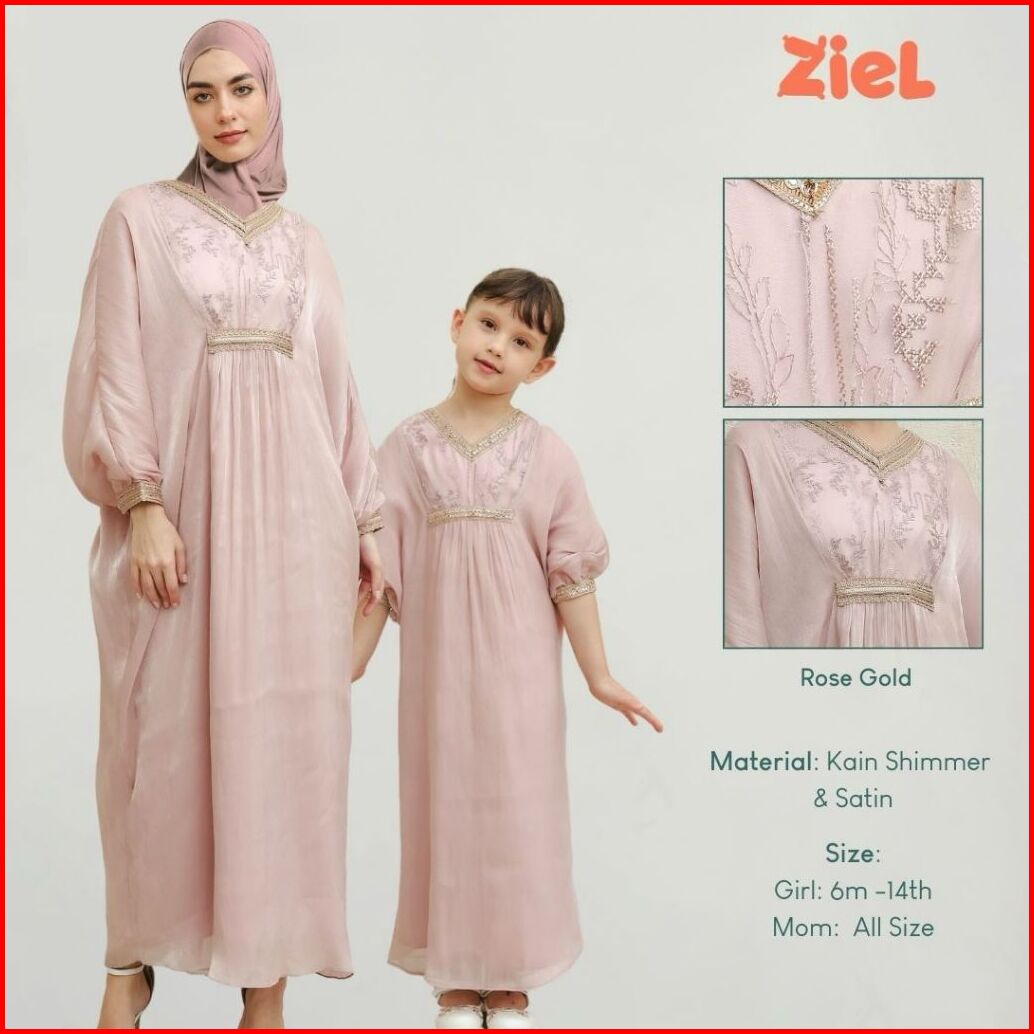 Ziel Kids - Zarina Dress Gamis Raya Terusan Satin Premium Couple Mom Girl