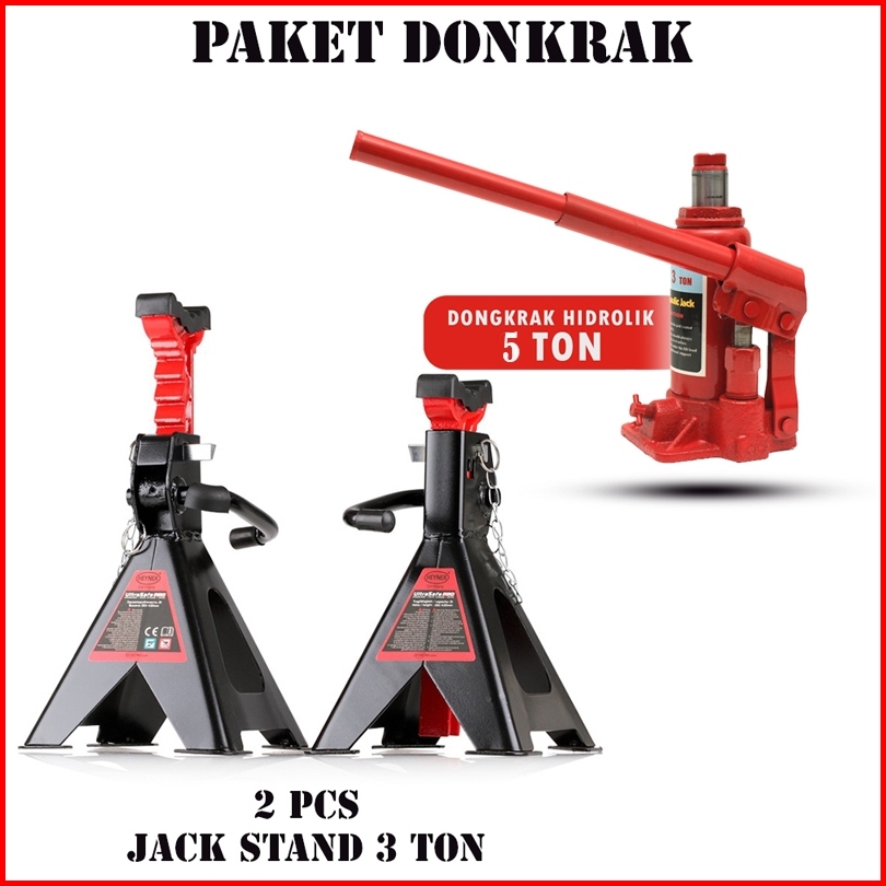 Paket Hemat Murah Dongkrak Botol 5ton 2pcs Jack Stand 3 Ton