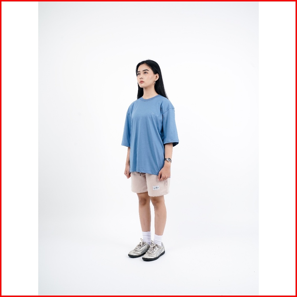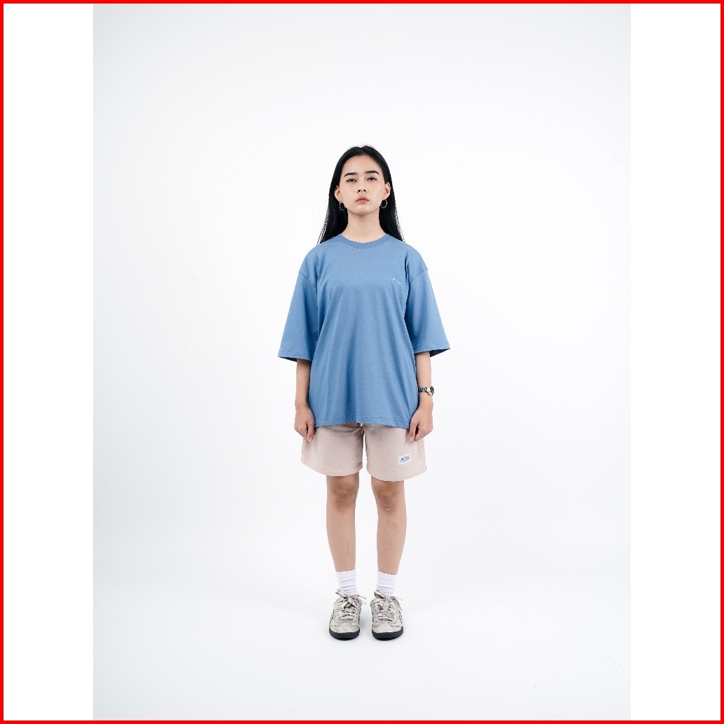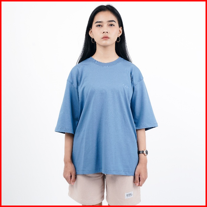 Clote Tshirt Oversize Boxy Fit Cotton Combed 24s Mono Embroidery Blue Denim M L Xl Xxl
