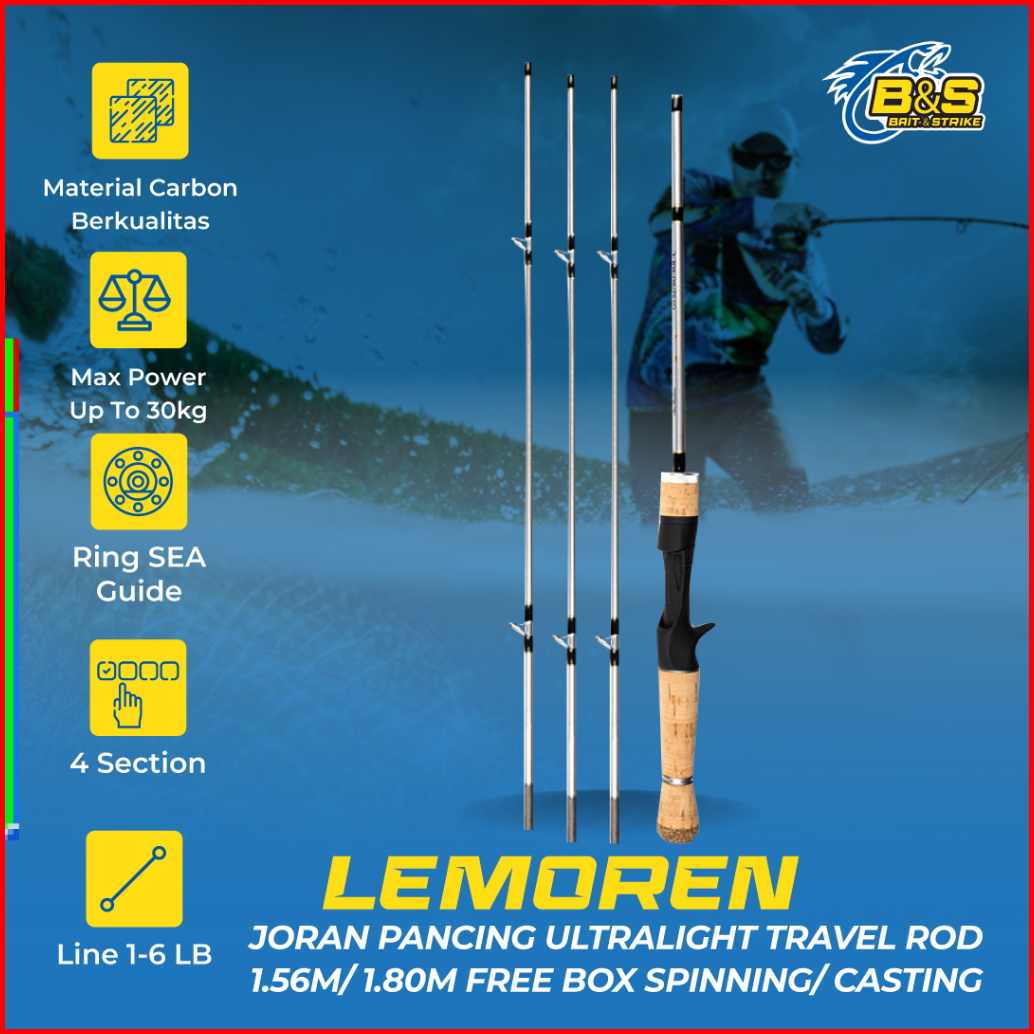 Joran Pancing Ultralight Lemoren Baitha Lure 1-6lb Joran Travel Rod 1.56m 1.80m Free Box Joran Type Spinning Dan Casting