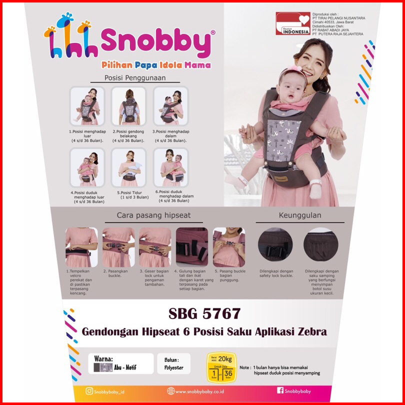 Snobby Gendongan Bayi Hipseat 6 Posisi Xelyn Athaya Zebra Eliza Krowy Megha Astronaut Series