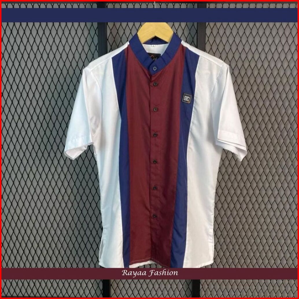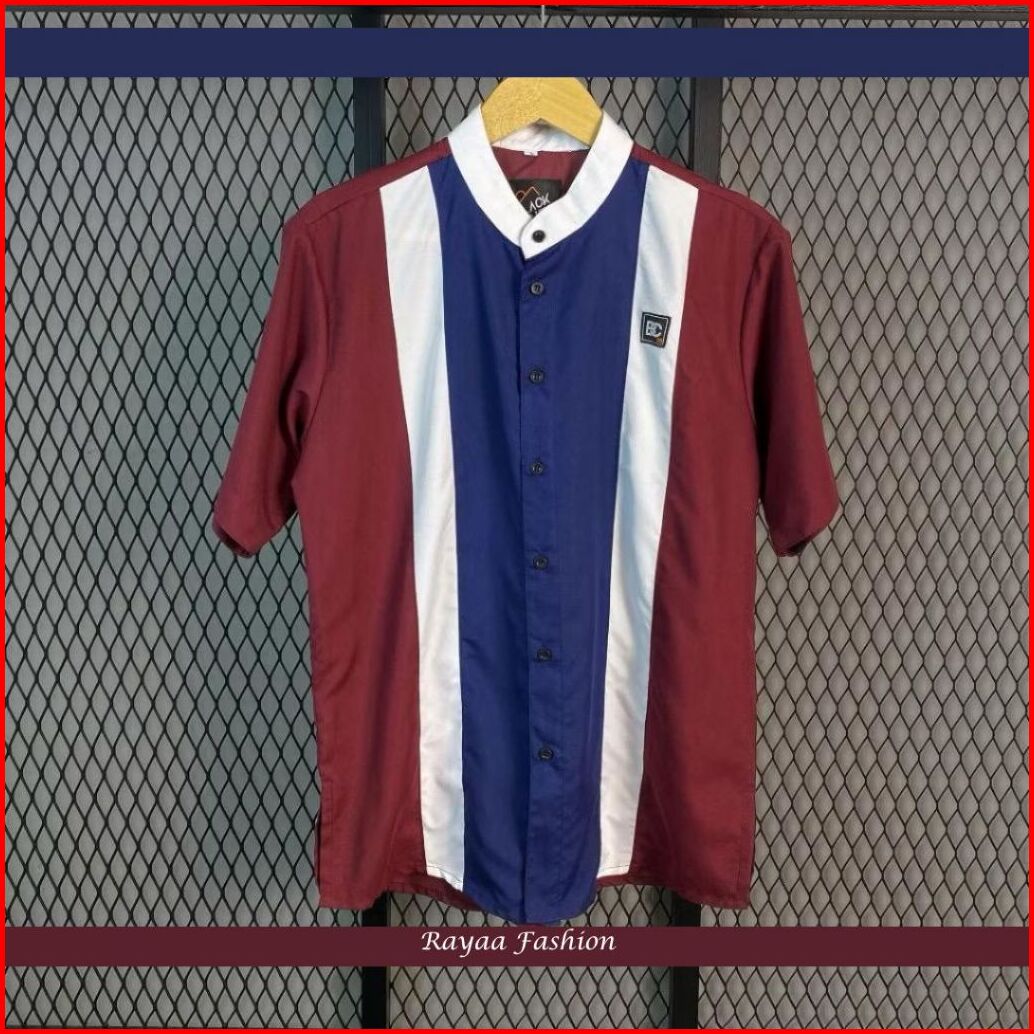 Baju Koko Burgundy Kurta Lengan Pendek Baju Koko Fashion Muslim Pria Dewasa Terbaru Bahan Toyobo