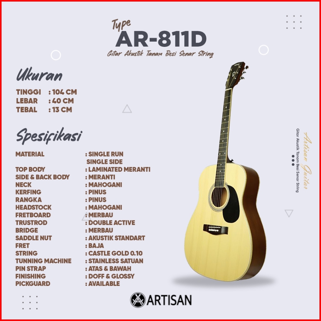 Artisan Gitar Akustik Tanam Besi Ar - 811d Senar String Guitar