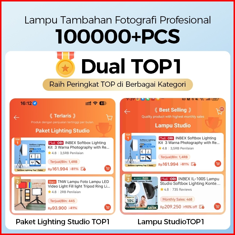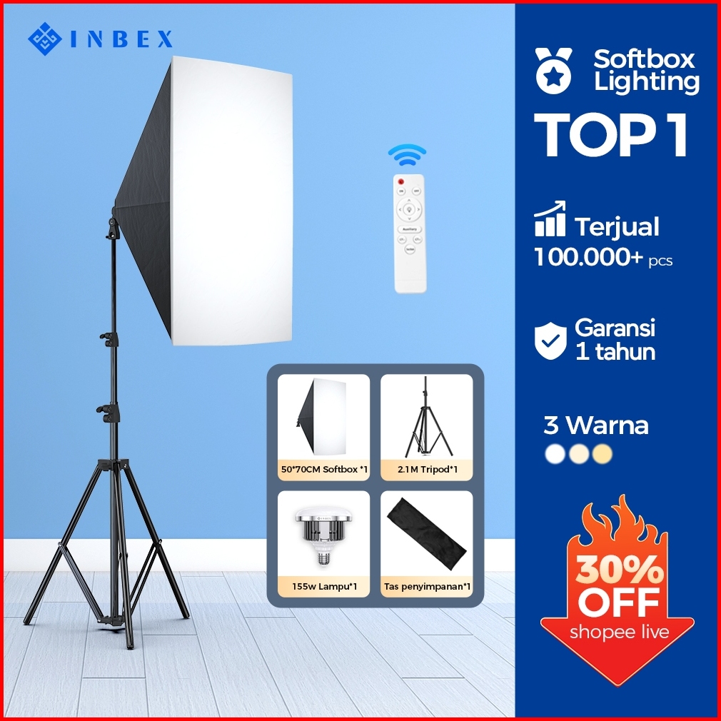 No.1 Best Sellinginbex Konten Kreator Softbox Lighting 3 Warna 3000k 6000k 50x70cm Untuk Vlog Streaming Studio Lampu Vid