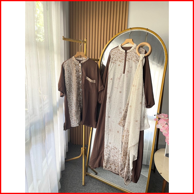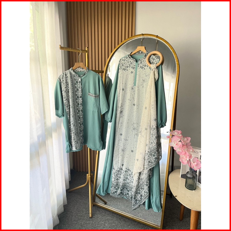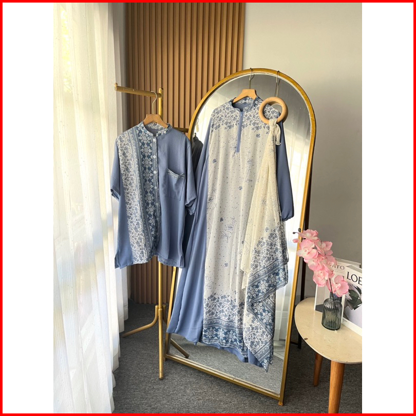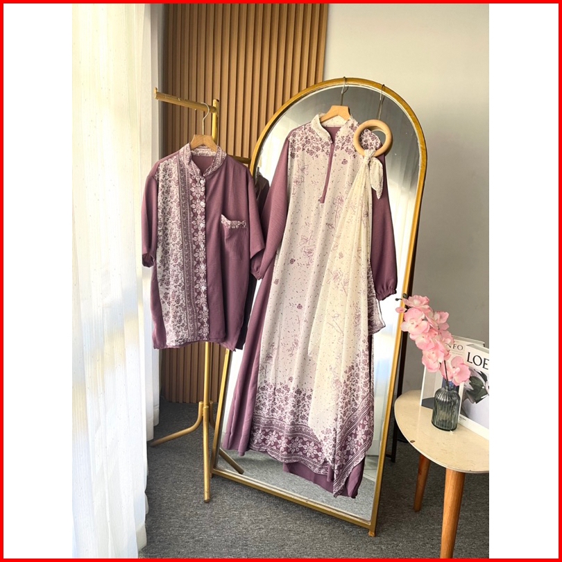 R.a Shop - Elleya Gamis Set Couple Free Hijab Motif Koko Pendek Terbaru Hari Raya 2025