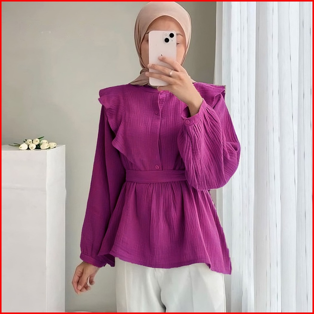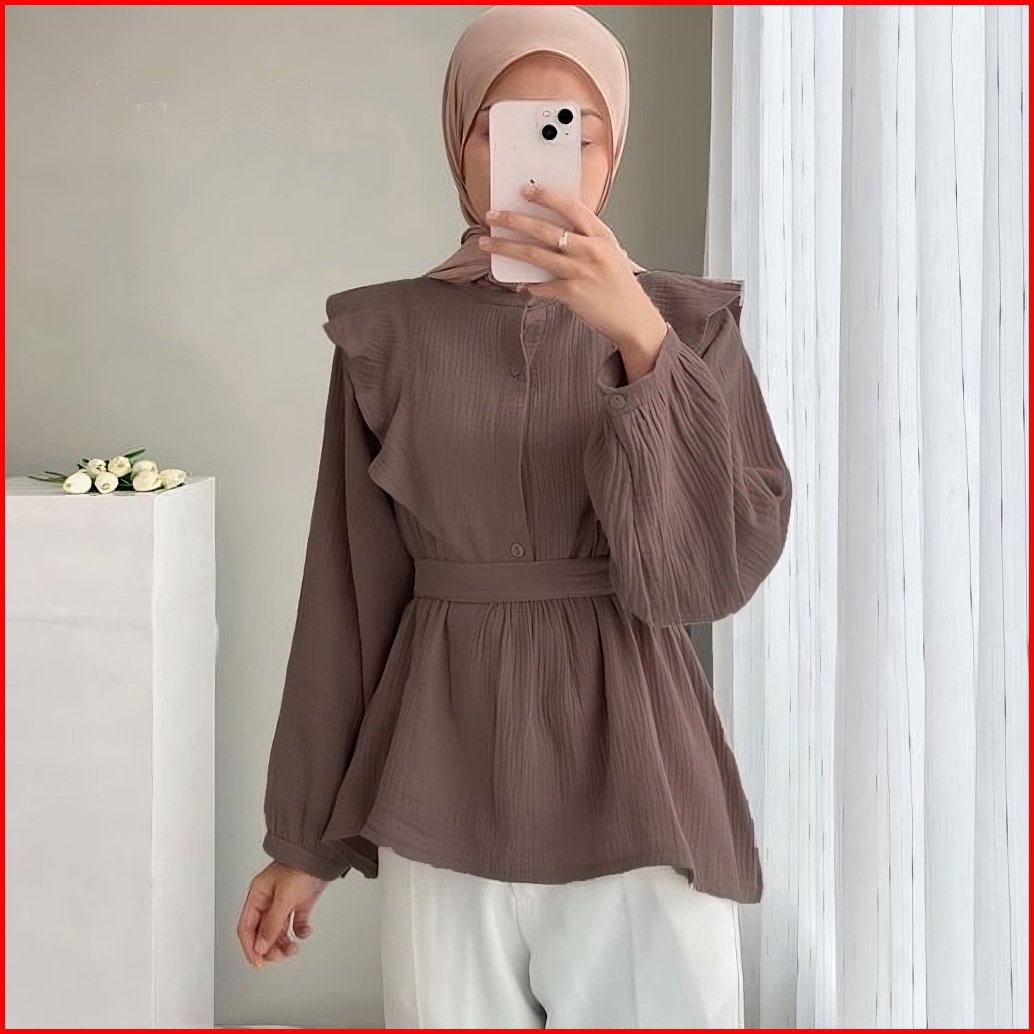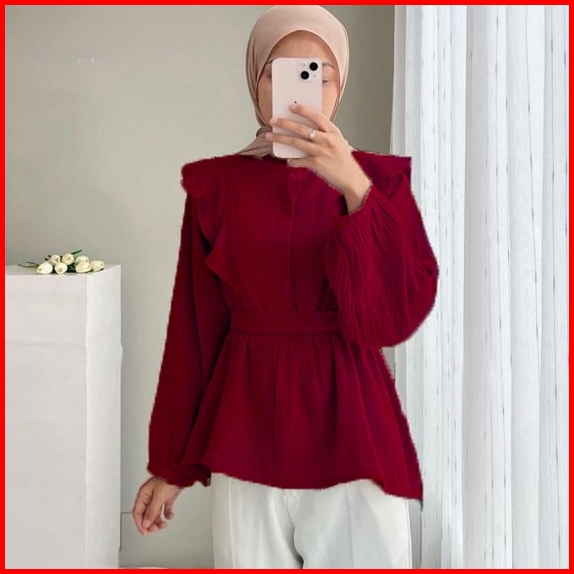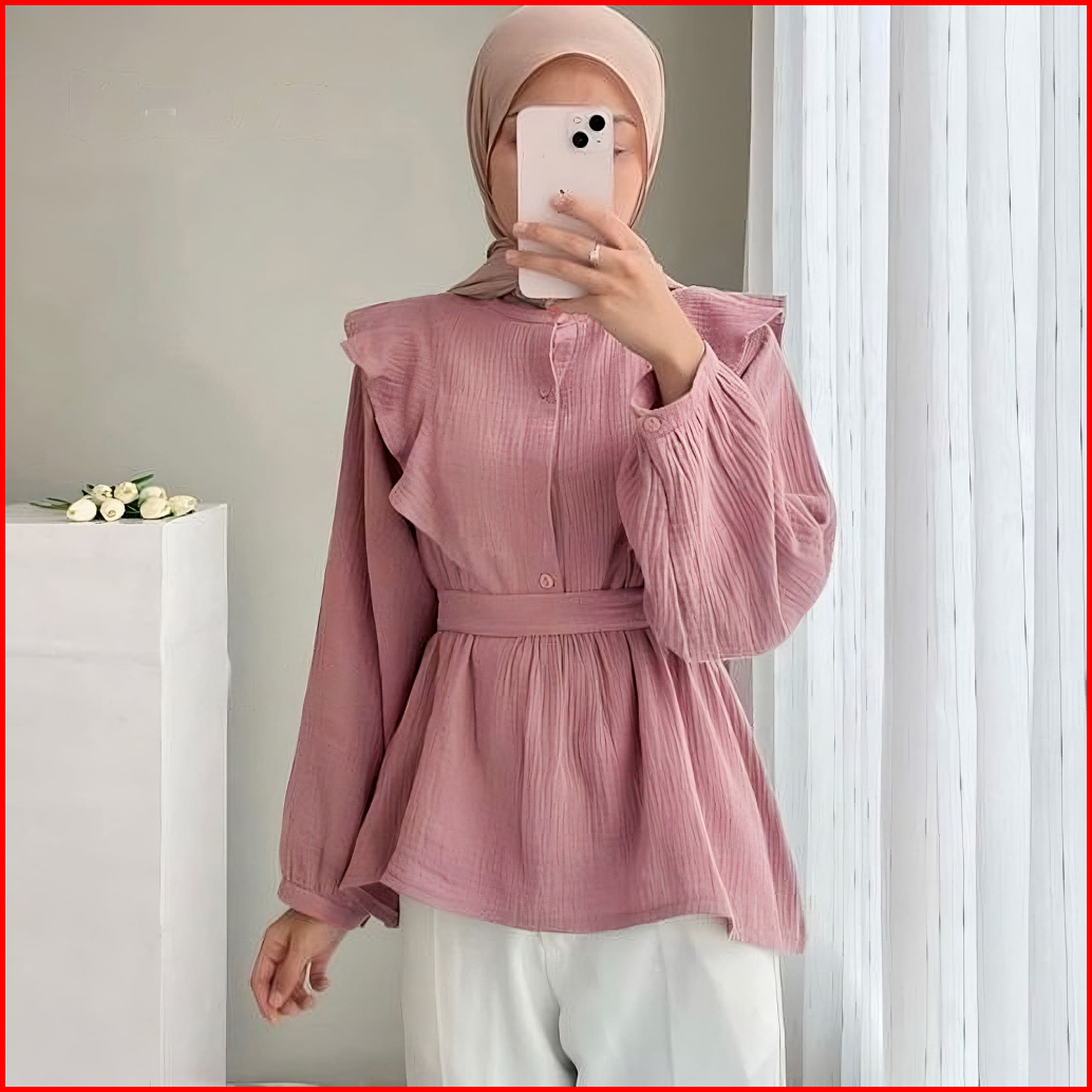 Meira Blouse Korean Style - Atasan Modis Kekinian Bahan Adem Dan Nyaman