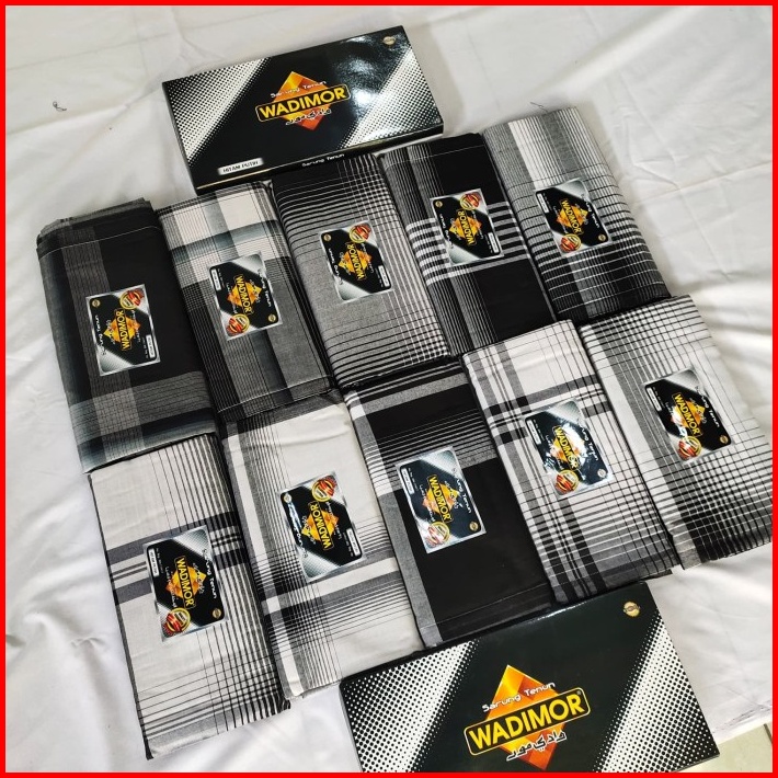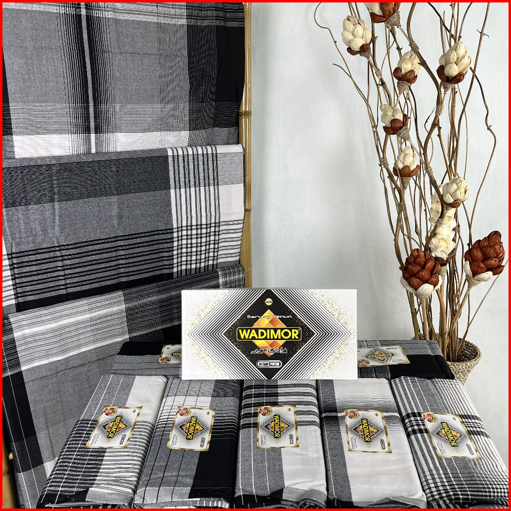 Sarung Wadimor Motif Hitam Putih Warna Black White Hp - Kain Tenun Dewasa Pria Laki Santri Solat Pesantren Sholat Remaja