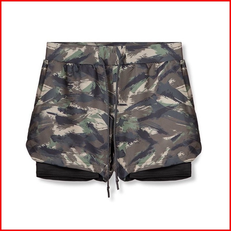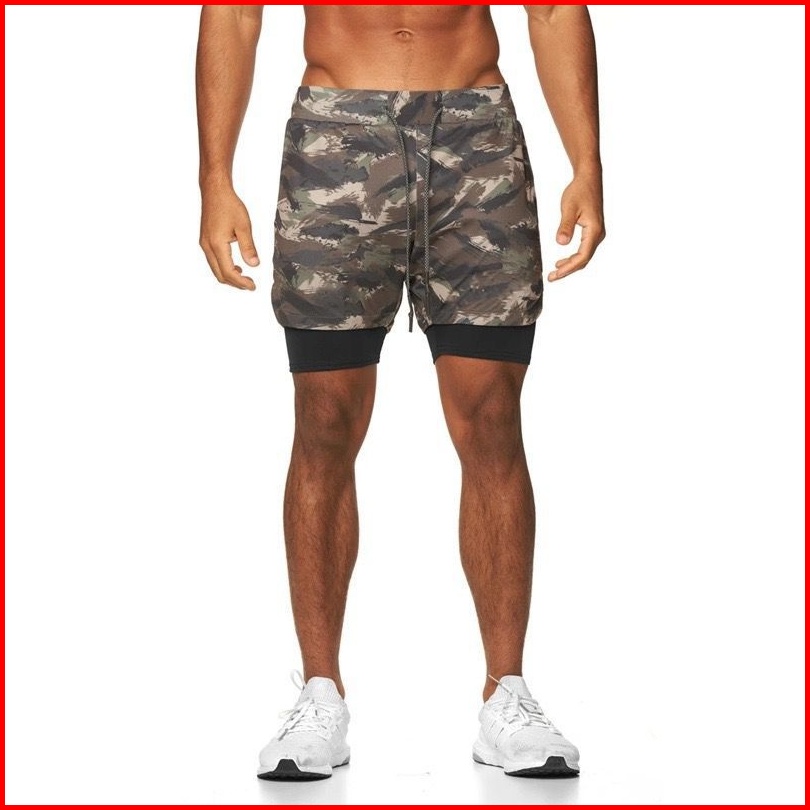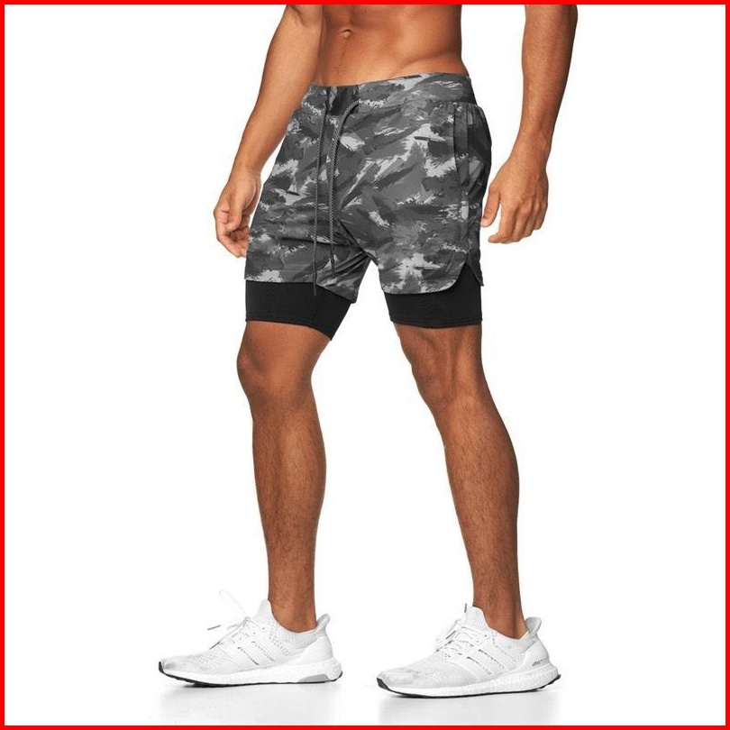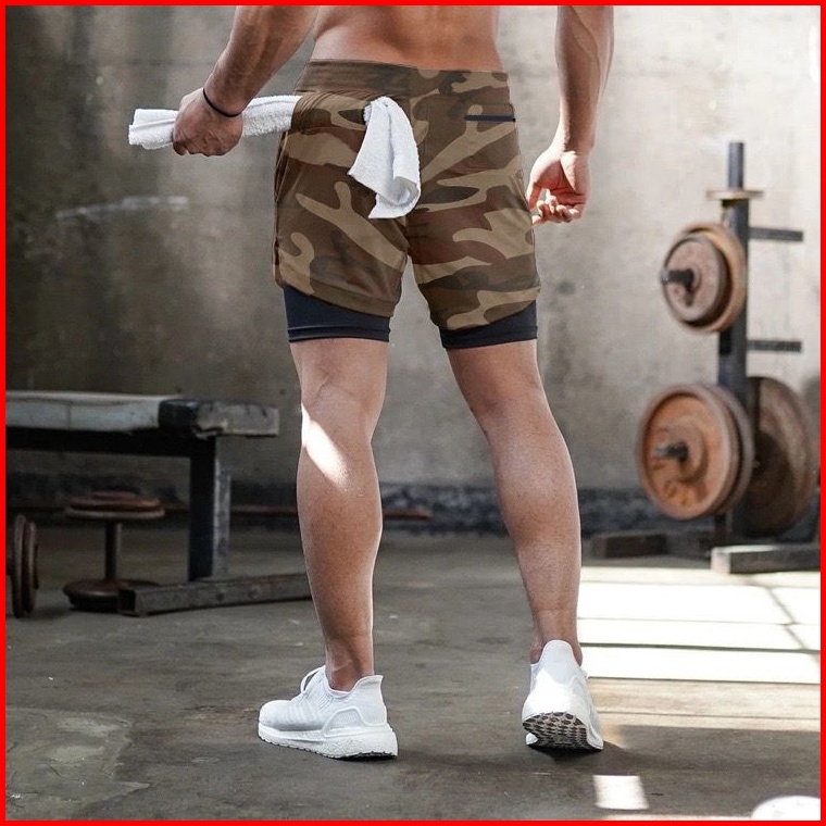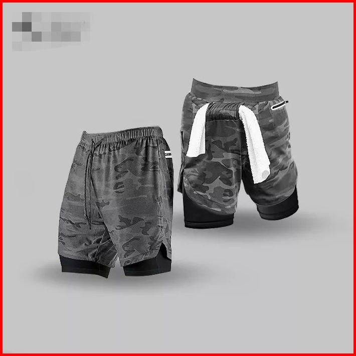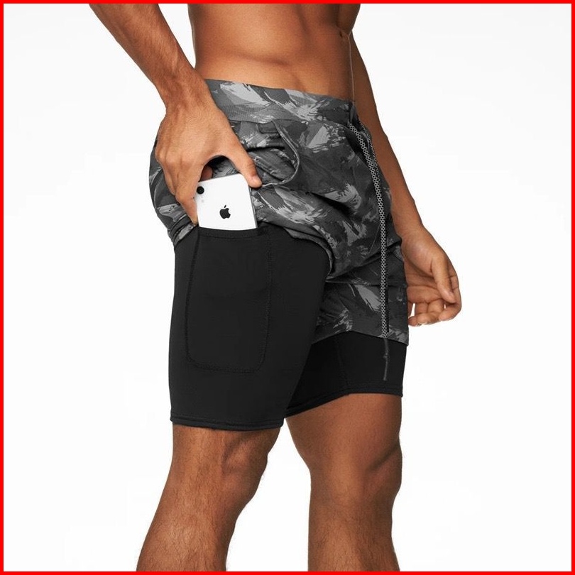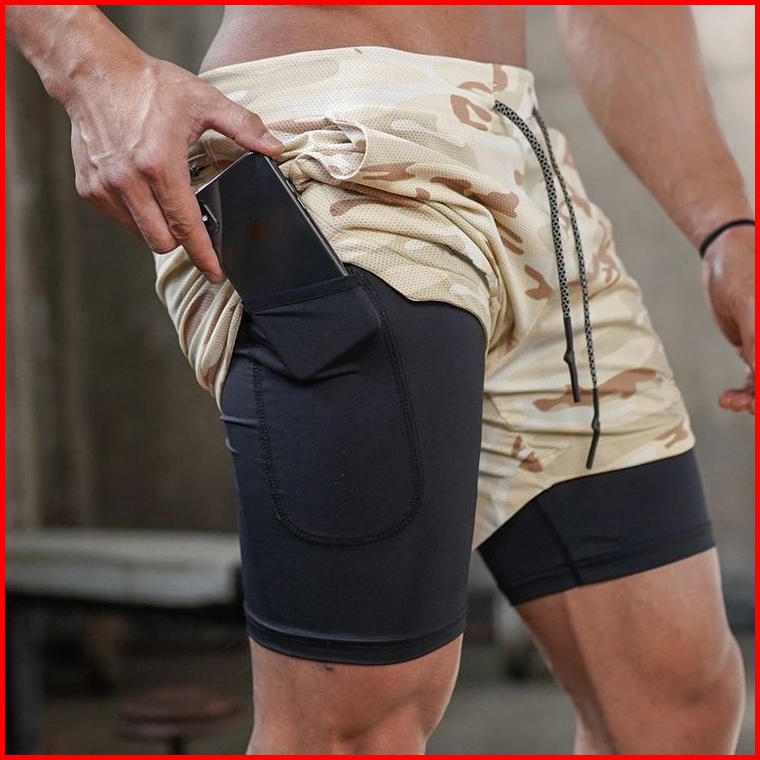 Eiffelmall - Celana Pendek Olahraga 2in1 Celana Sport Pria Celana Pendek Olahraga Gym Boxing Bersepeda Jogging
