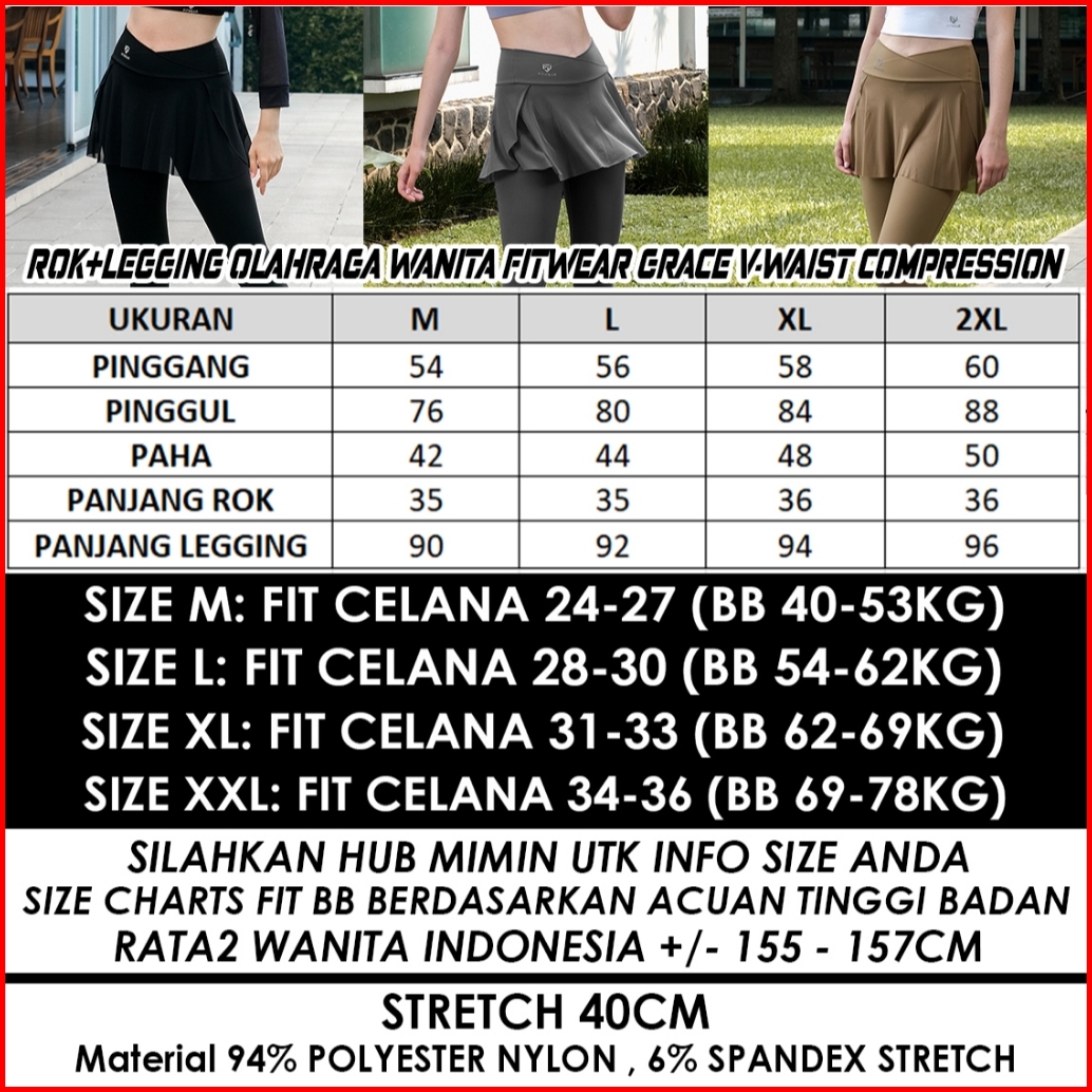 Fitwear Rok Legging Olahraga Padel Wanita Grace Mesh Compression - M - 2xl