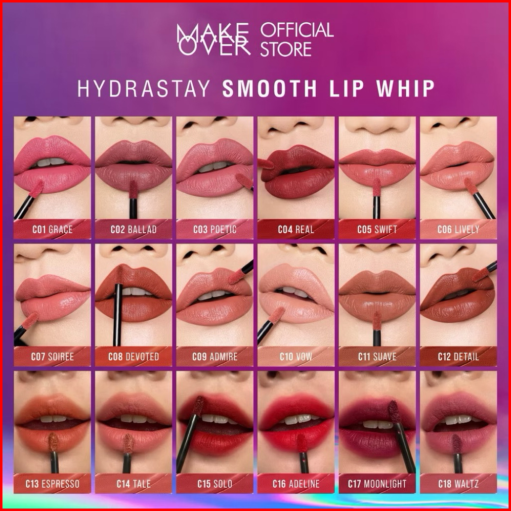 Make Over Hydrastay Smooth Lip Whip - Lipcream Untuk Bibir Kering Smooth Ringan Lembab Lembut Base Ombre Nude Luxurious