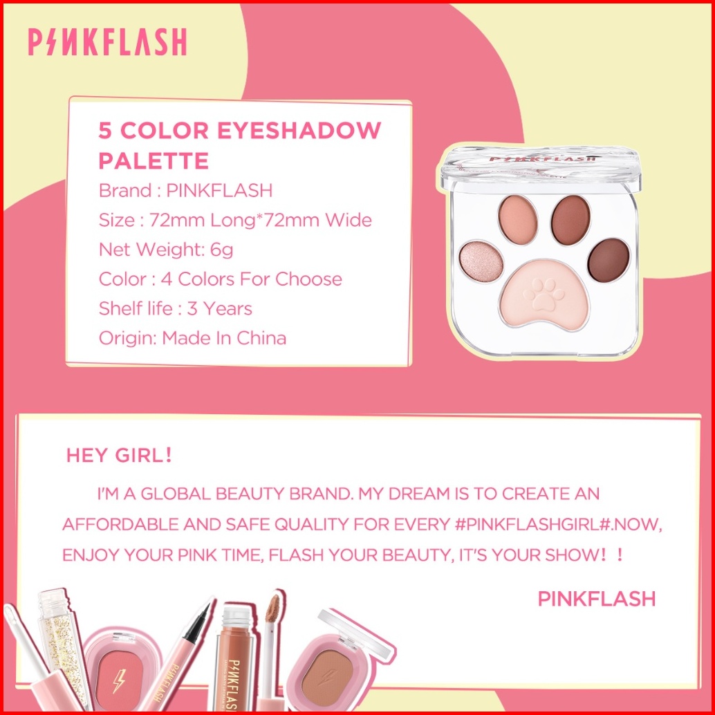 Pinkflash Portable 5 Shades Eyeshadow Palette Giltter High Pigment Easy To Blend Lasting