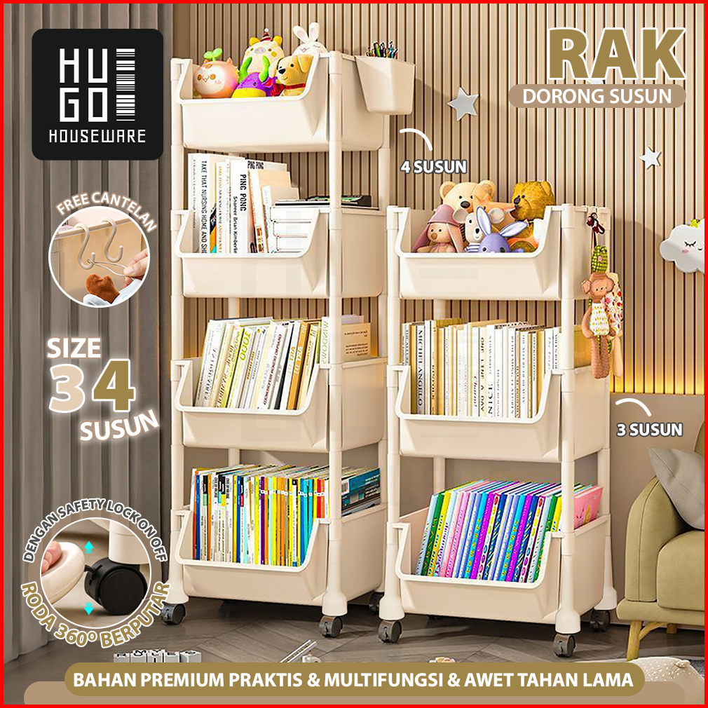 Hugo Rak Dapur Dorong Rak Buku Plastik Serbaguna Rak Troli Toilet Kamar Mandi Susun Dengan Roda