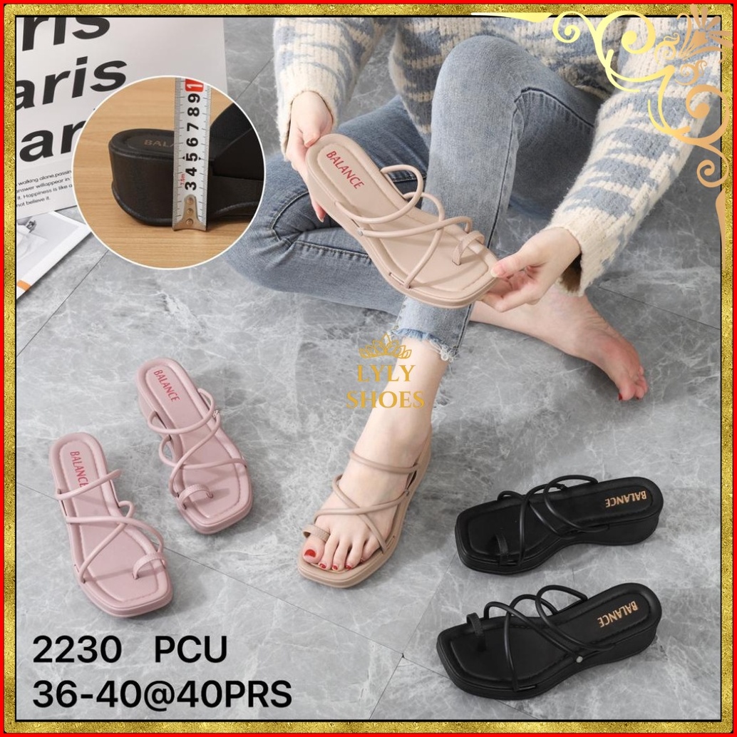 Sandal Wanita Wedges Import Balance Motif Silang Hak Sedang 2230