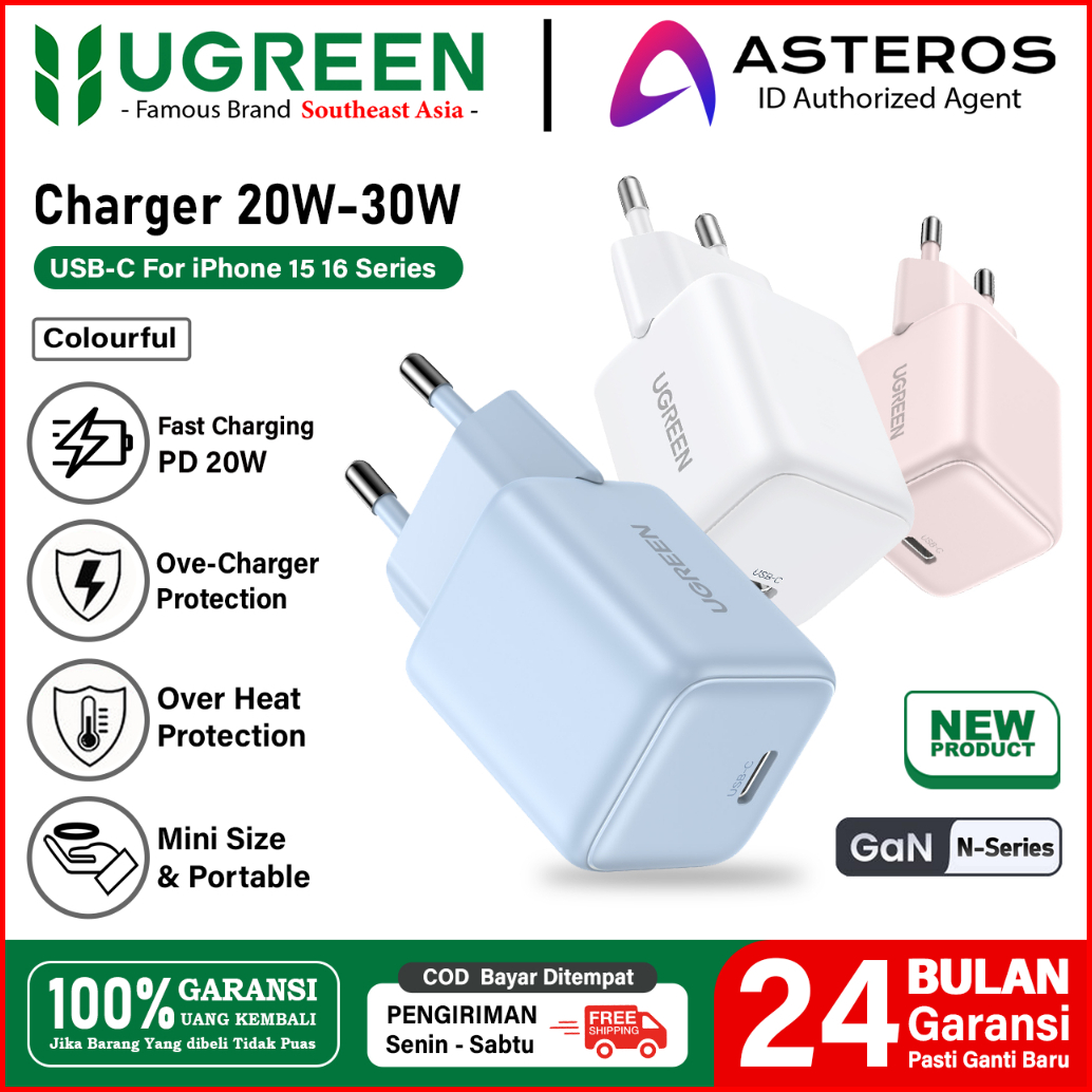 Ugreen Kepala Charger Iphone 17 16 15 Series Pd Type C Fast Charging 20w 30w 45w