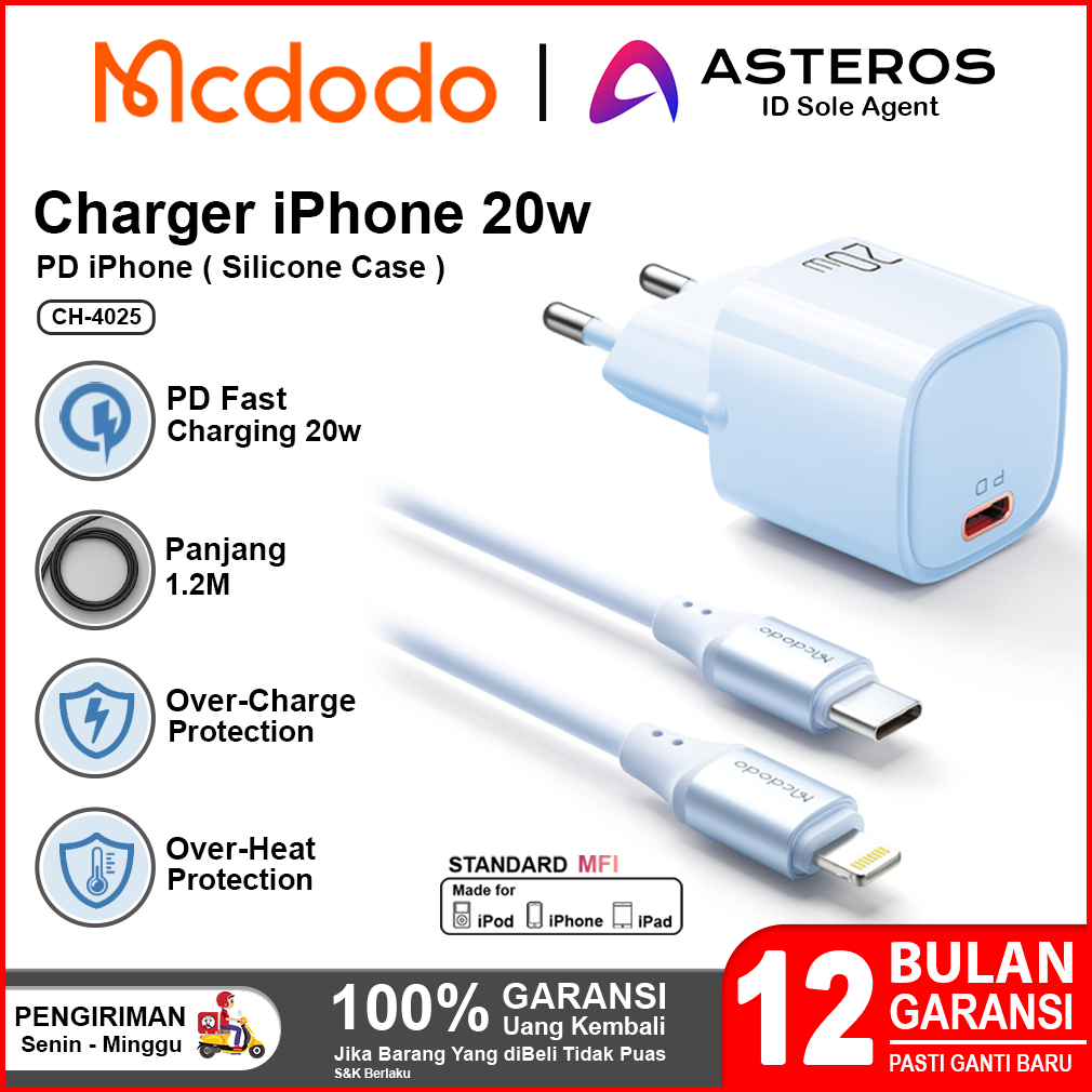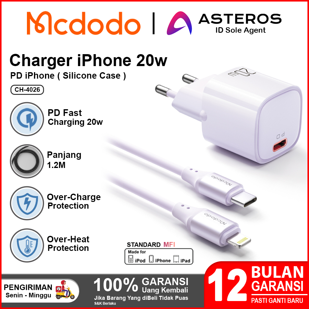Mcdodo Charger For Iphone 11 12 13 14 Pro Max Fast Charging 20w 30menit 65 Baterai Terisi