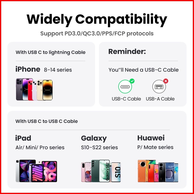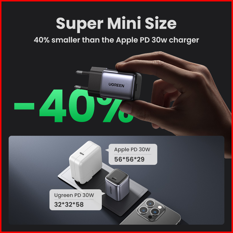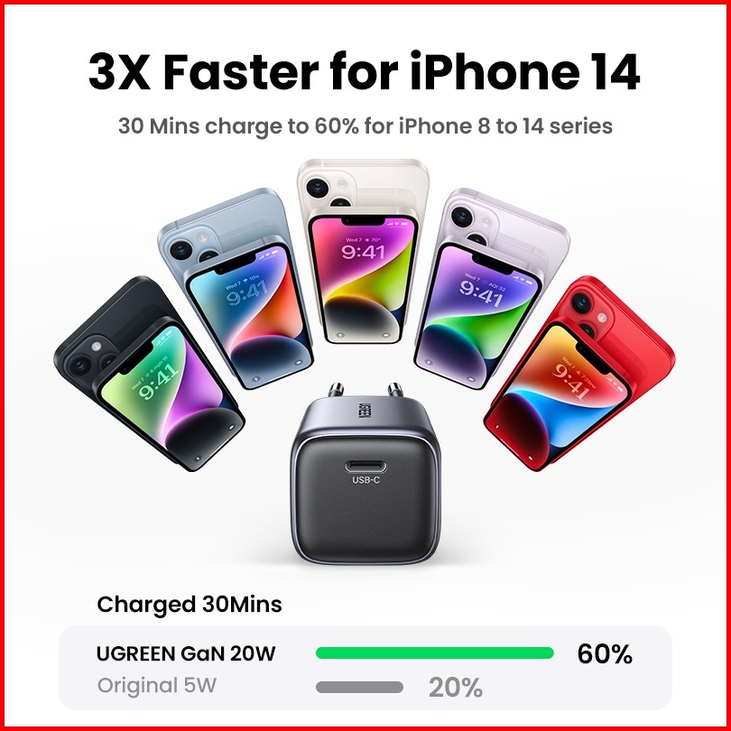 Ugreen Charger Iphone 14 13 12 11 Series Gan Type C To Lightning Mfi Fast Charging 20w 30w