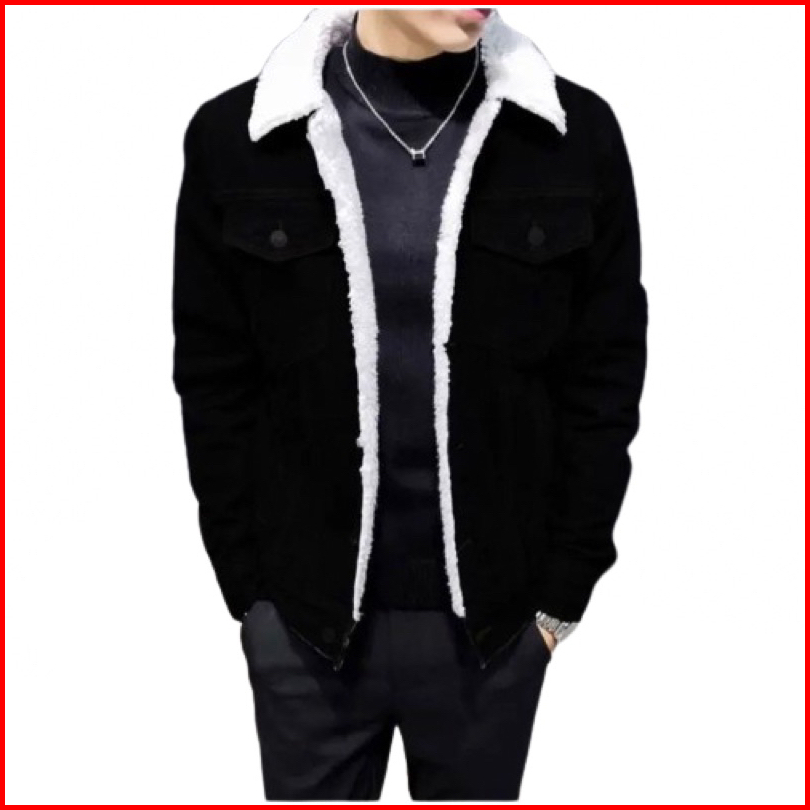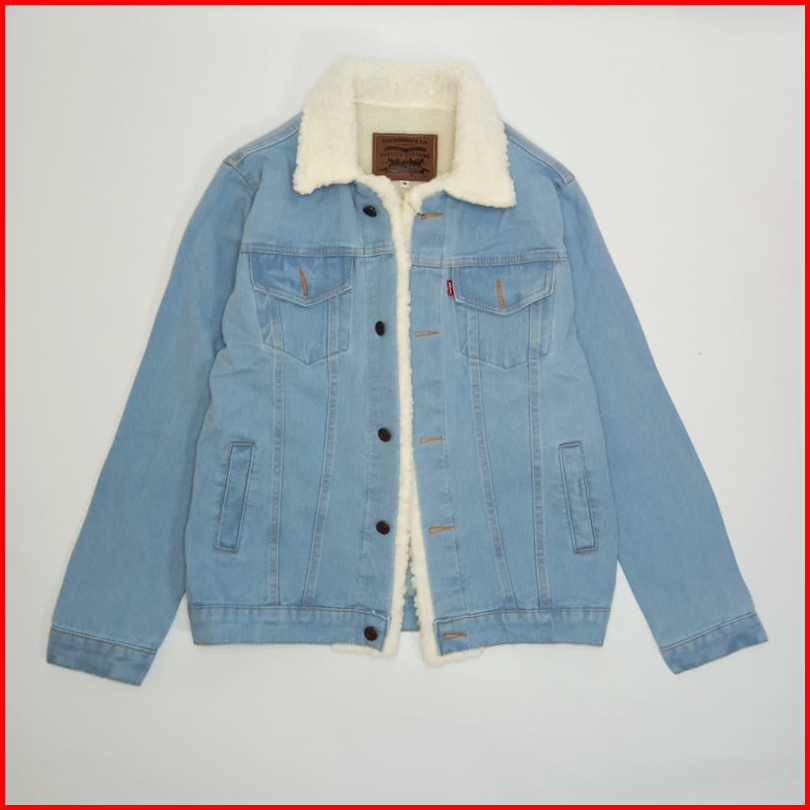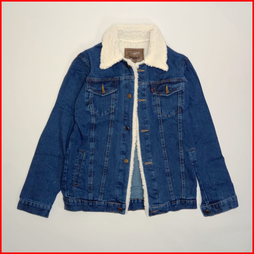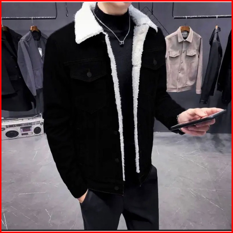 Jaket Jeans Sherpa Bahan Bulu Korean Style High Quality M L Xl