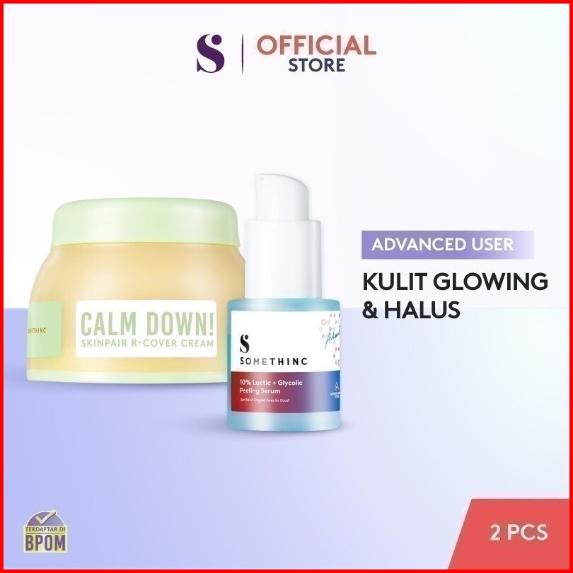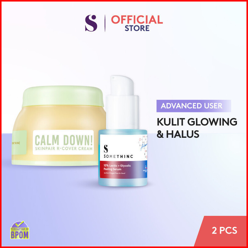 Somethinc 2 Pcs Combo Exfoliating Glowing Calm Down Skinpair R-cover Cream Moisturizer 10 Lactic Glycolic Peeling Serum