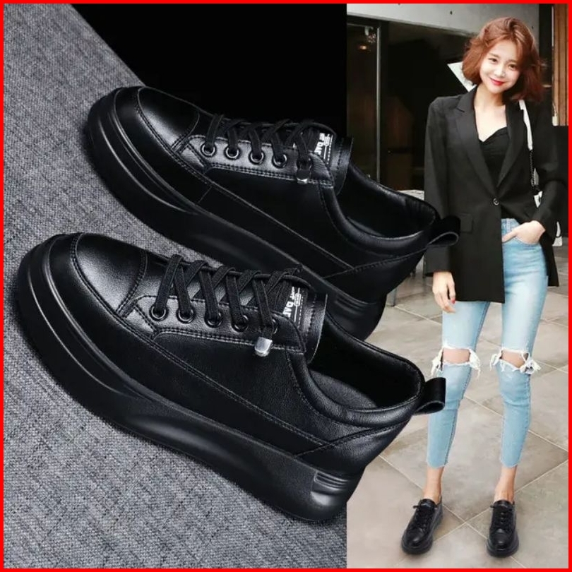 Sepatu Sekolah Wanita Hitam Polos Sepatu Sneaker Wanita Import Korean Fashion