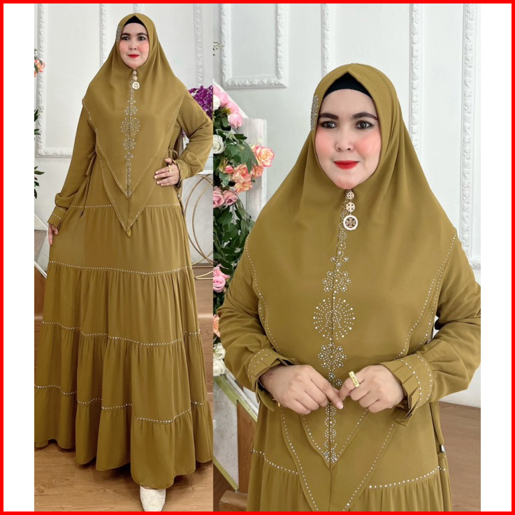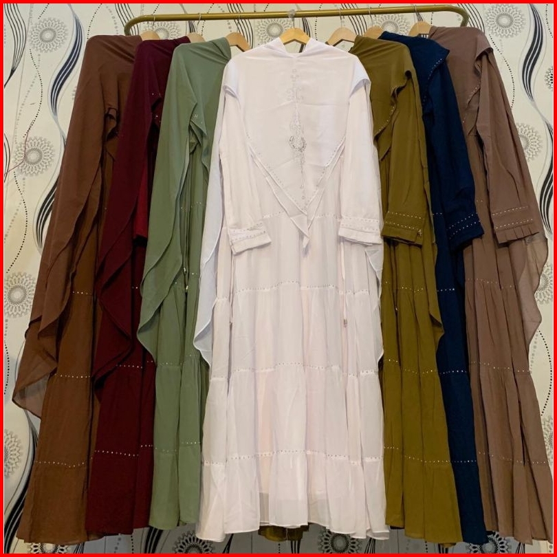Gamis Syari All Size Muat Bb 40 Sampai 85kg Mewah Elegan Model Tingkat Kerut Ceruty Polos