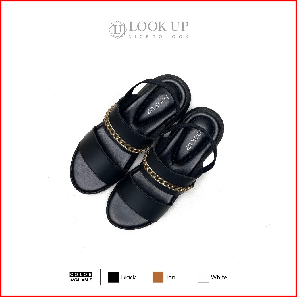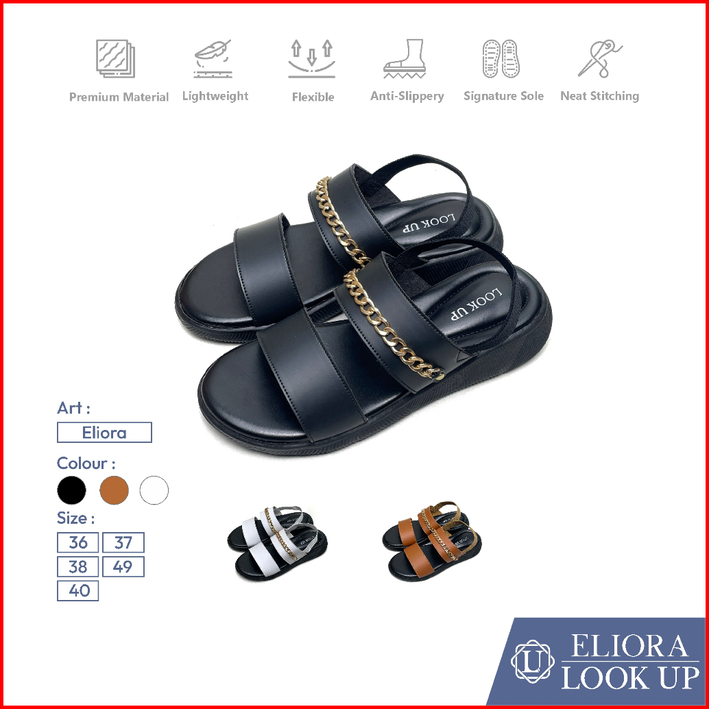 Eliora Lookupshoes Wedges Sandal Wanita Platform Model Slop Ban 2 Rantai Tali Strap Belakang