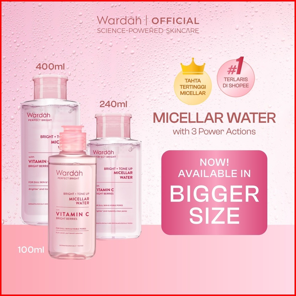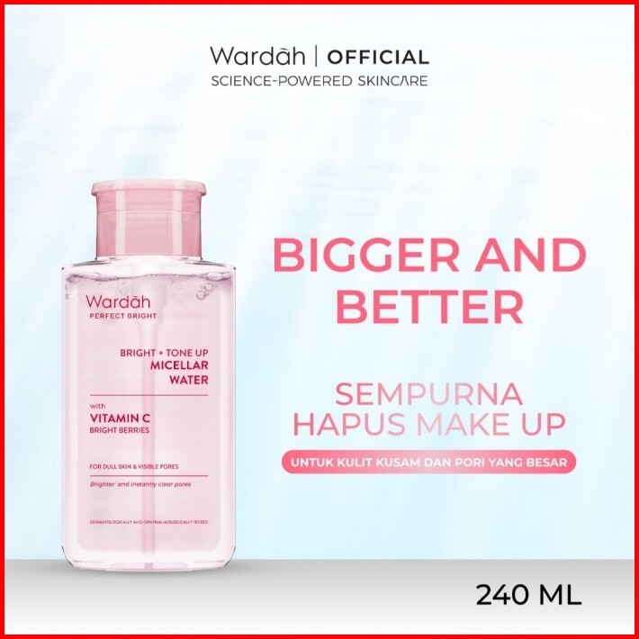 Wardah Perfect Bright Tone Up Micellar Water - Micellar Water Dengan Micelles Pencerah - Make Up Remover Lebih Bersih Da
