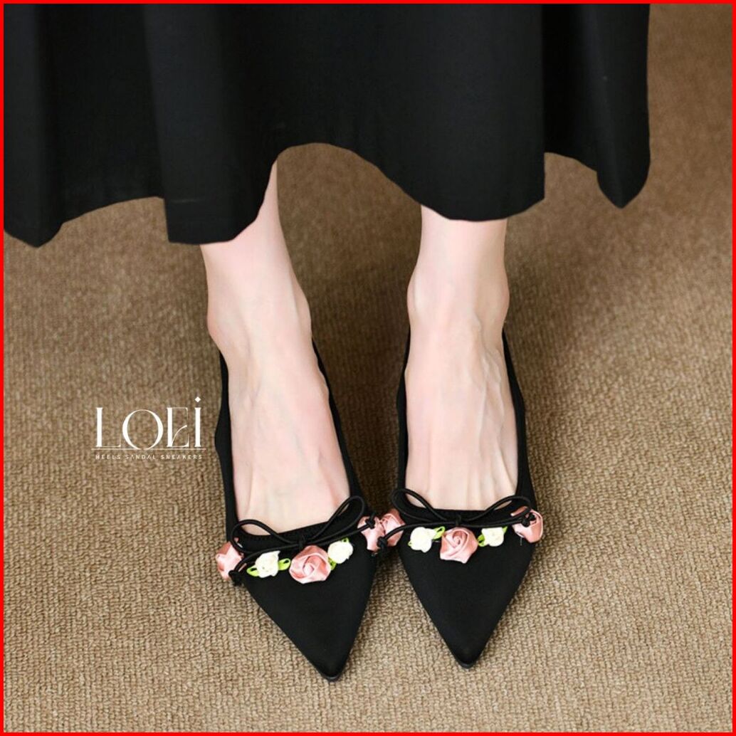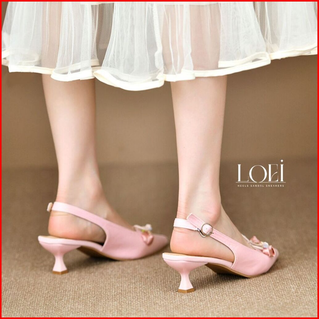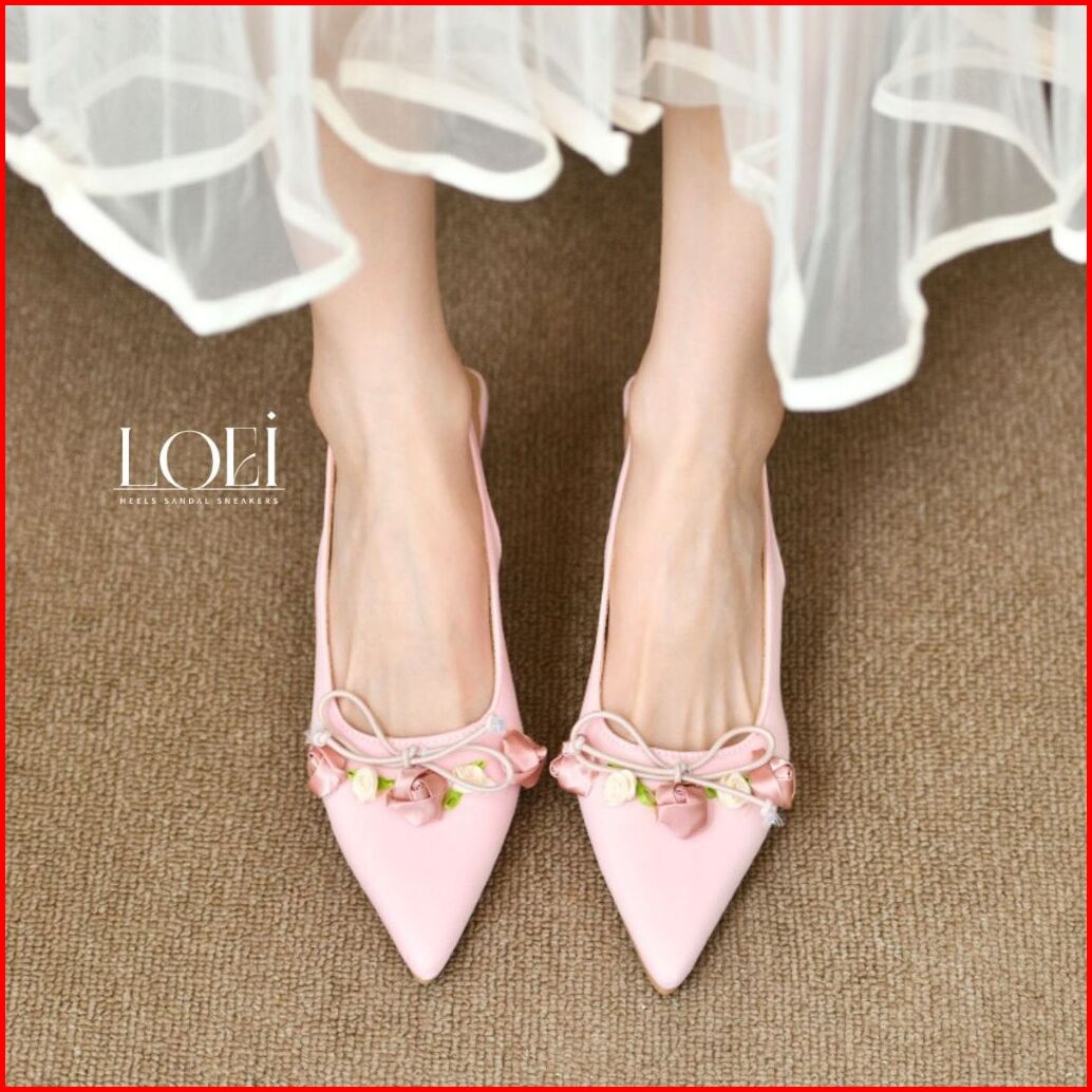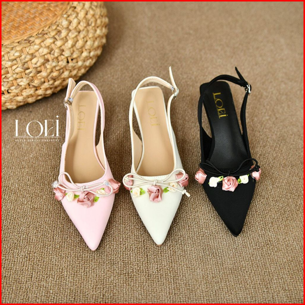 Loei Levina Heels Floral Vintage Wanita Sepatu Hak Slingback Elegant Motif Bunga Pita 1006