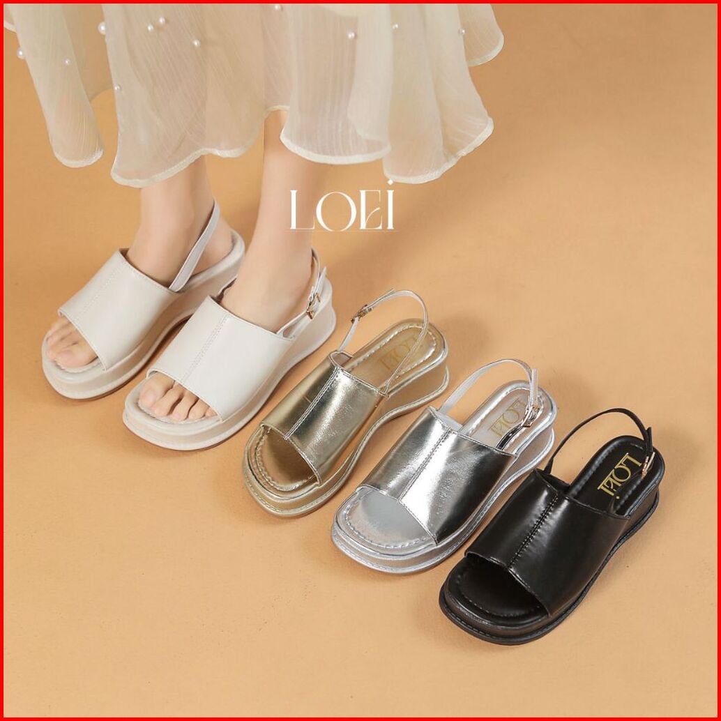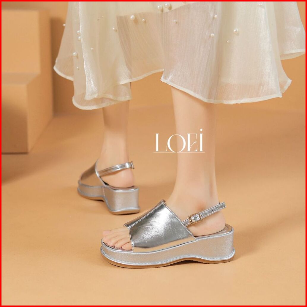 Sale Loei Agnes Sandal Wedges Slingback Wanita Sandal Metalic Silver Wanita Korea Style Bl363