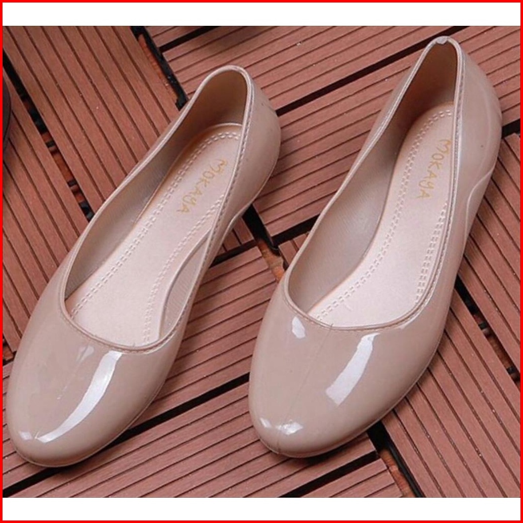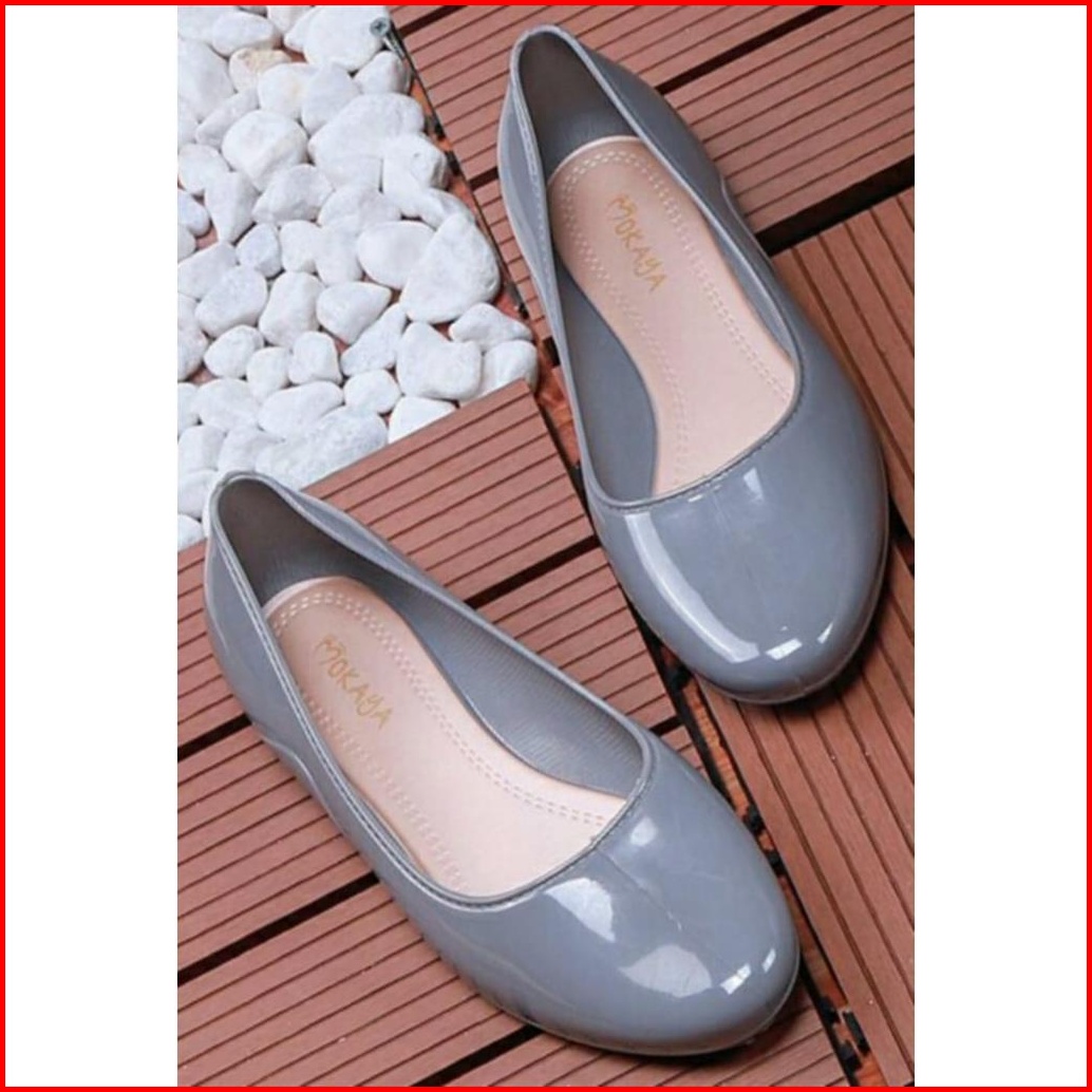 Sepatu Slop Jelly Wanita Korea Polos Glossy Simple Cantik Elegant Kekinian Import Mokaya Size 36-40 1802-06