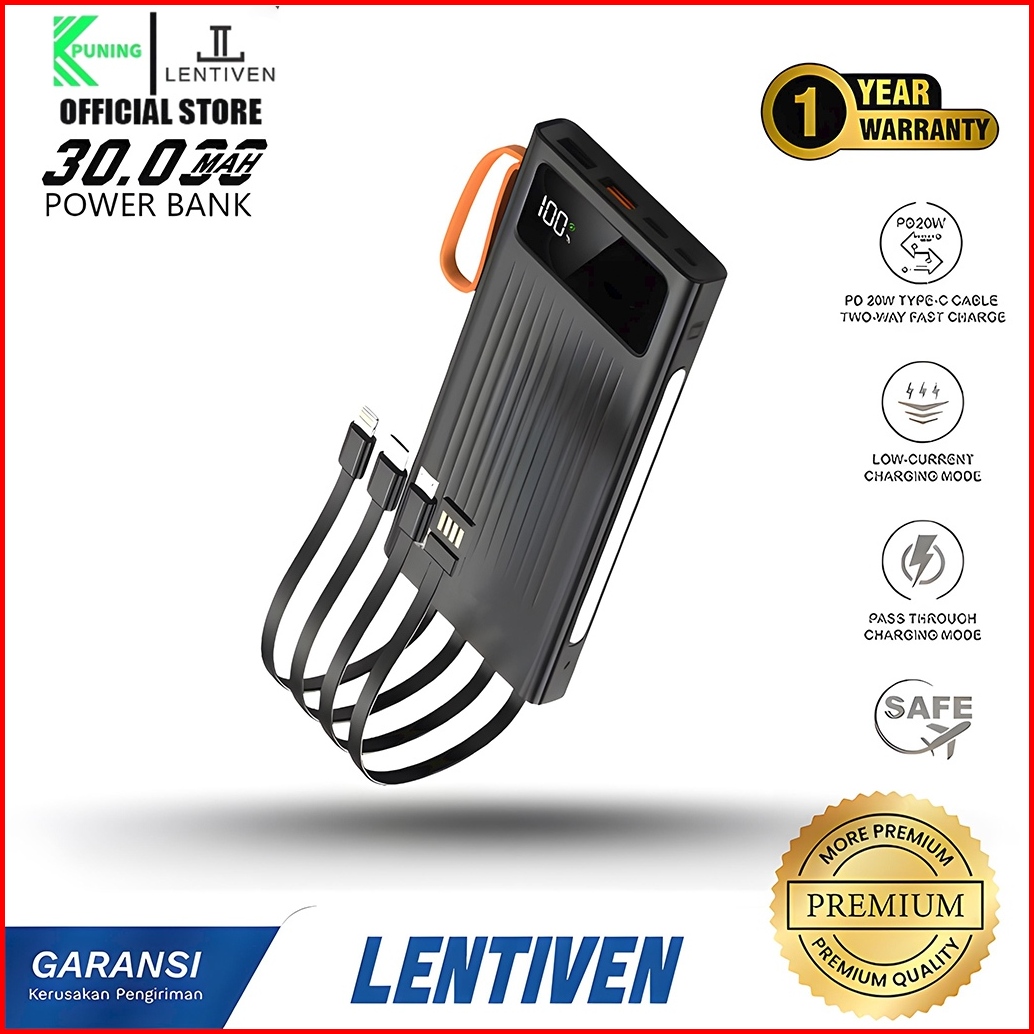 Puning Lentiven Powerbank 30000 Mah Mini With 4 Kabel Data Usb Fast Charging Pj57