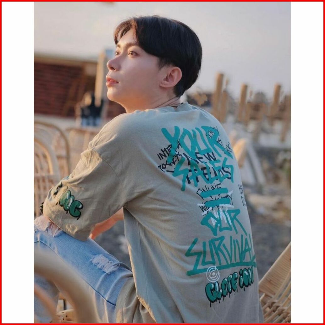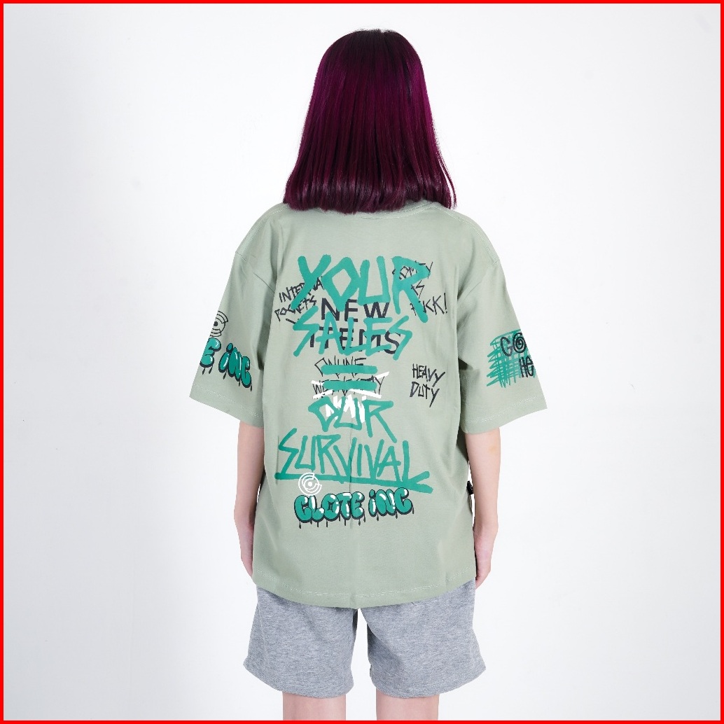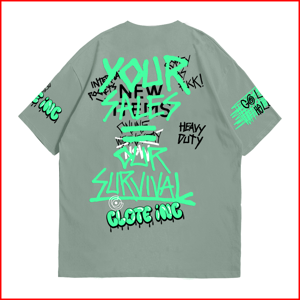 Clote - Tshirt Oversize Graphic At Front Back Your Sales Sage Green Cotton Combed 24s