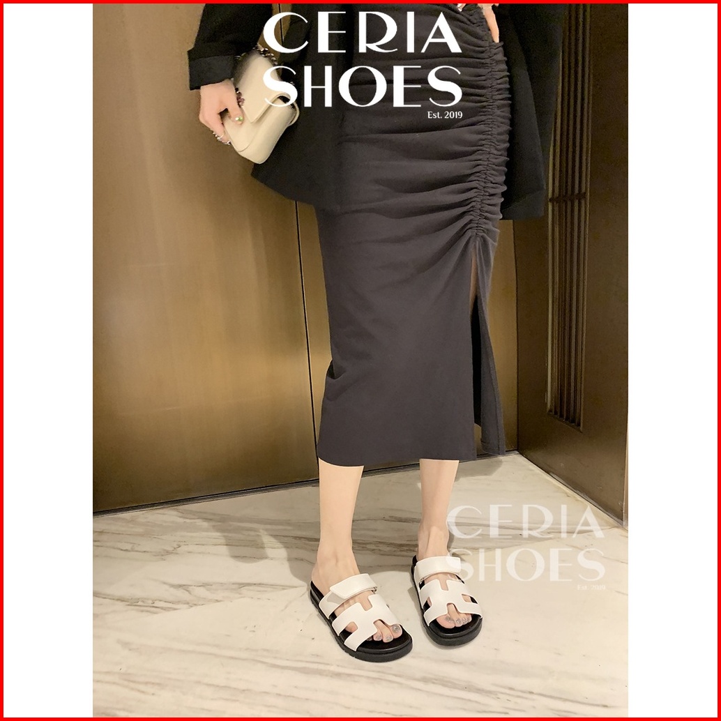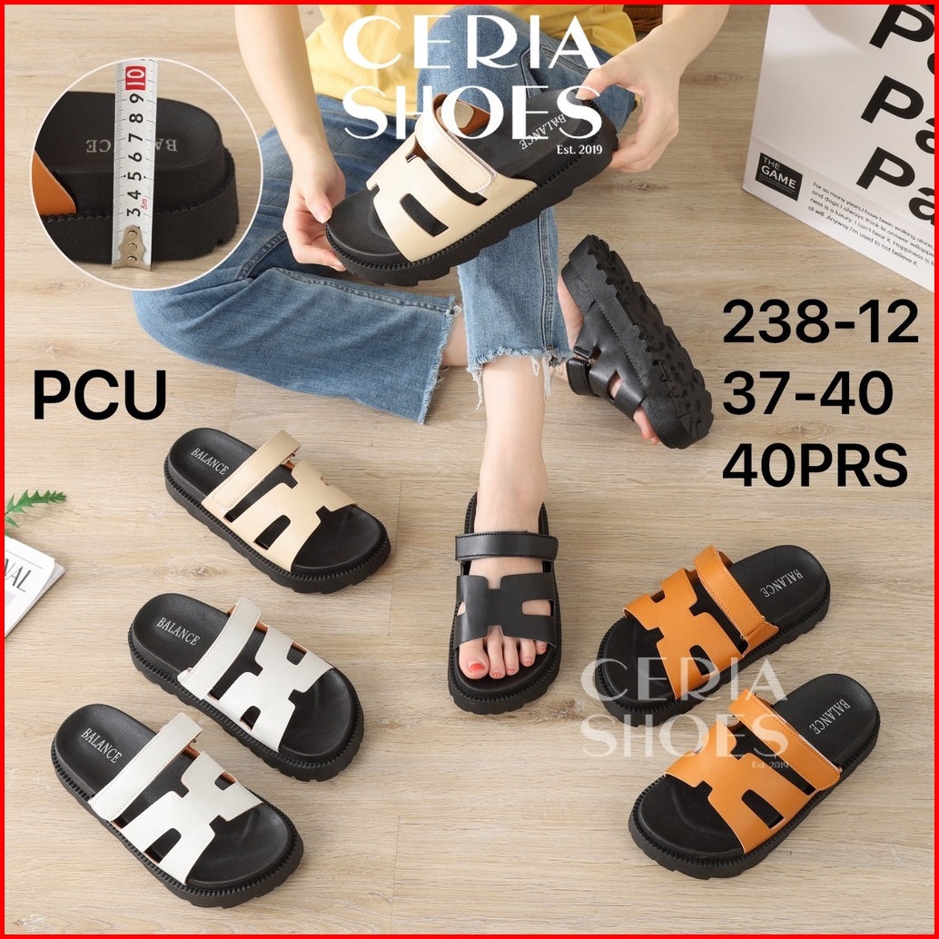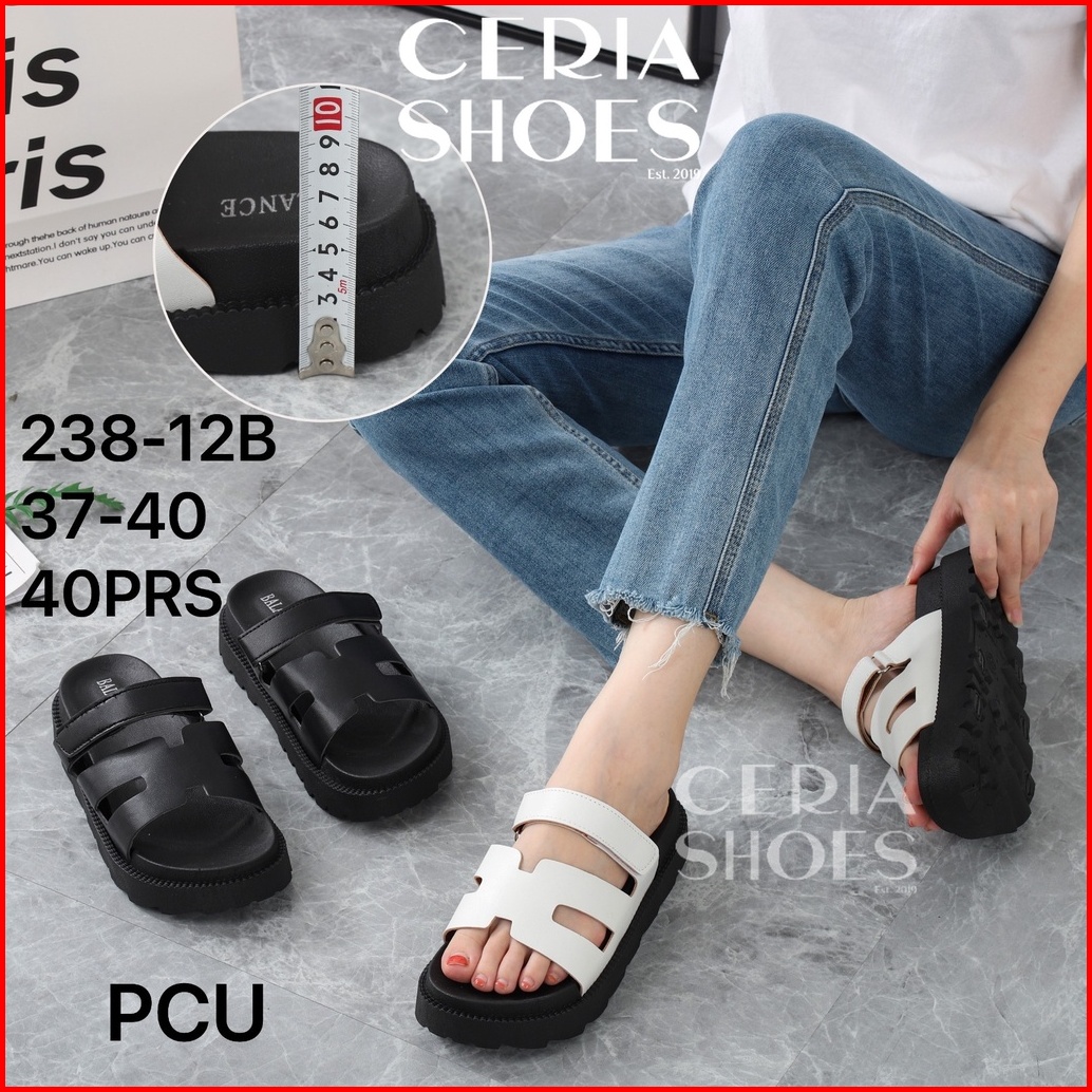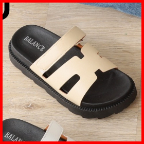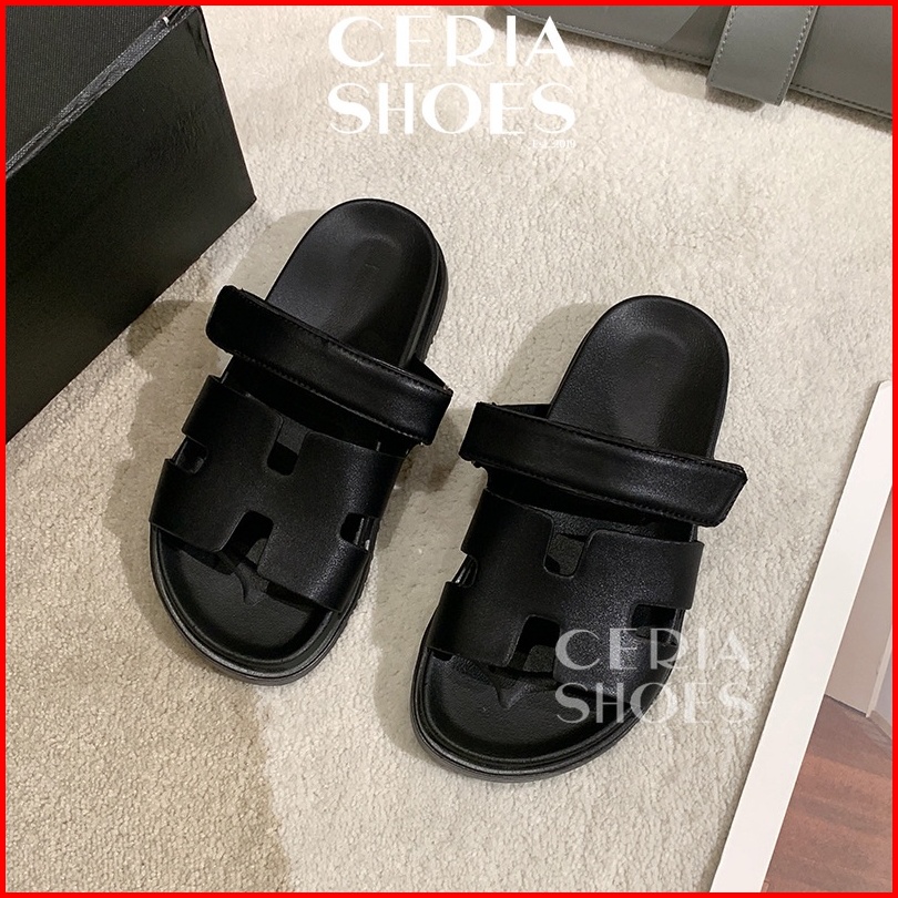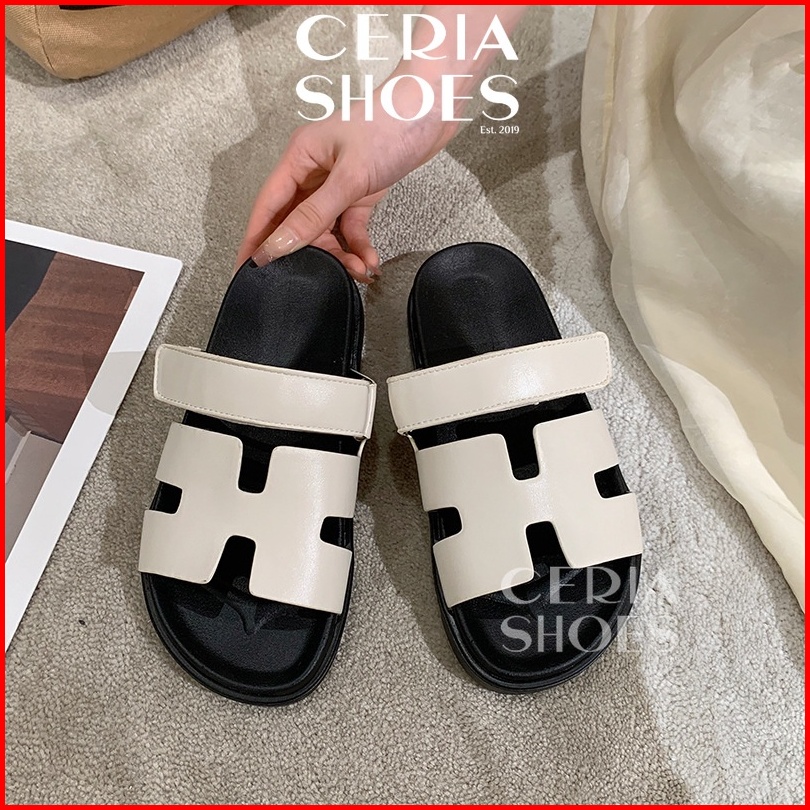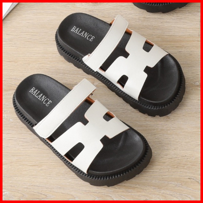 Sandal Slop Karet Wanita Import Motif H Strap Perekat Velcro Adjustable Balance 23 -12