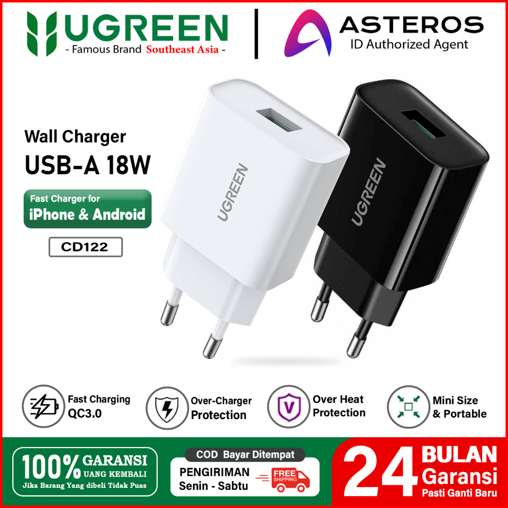 Ugreen Kepala Charger Usb-a 18w Fast Charging Untuk Android Iphone