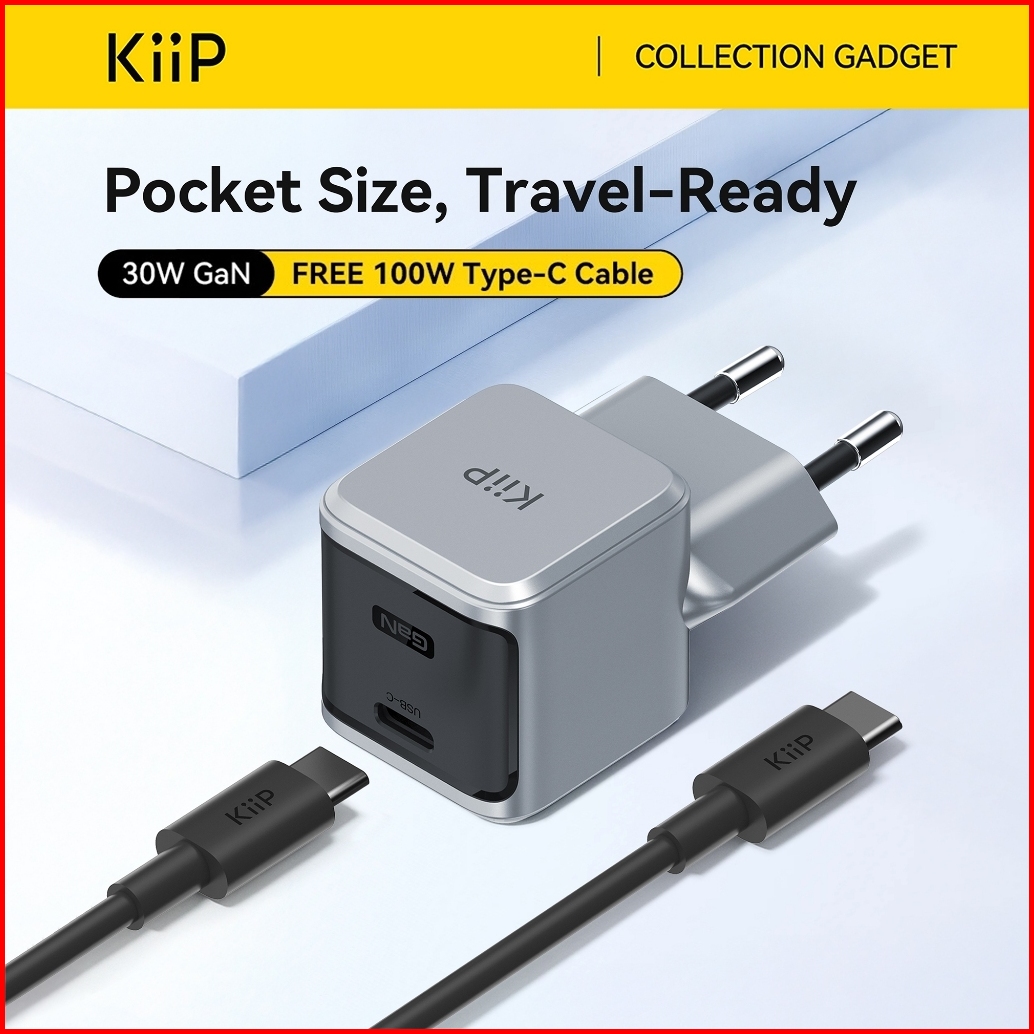 Kiip Wall Charger 30w Adaptor Gan3 Fast Charger Pd Qc 3.0