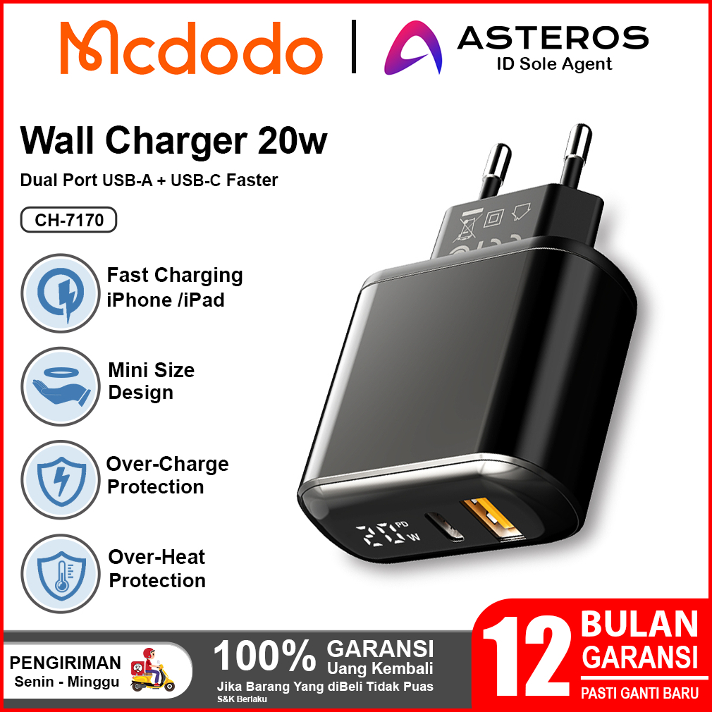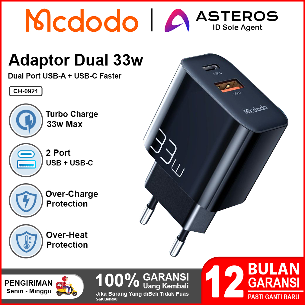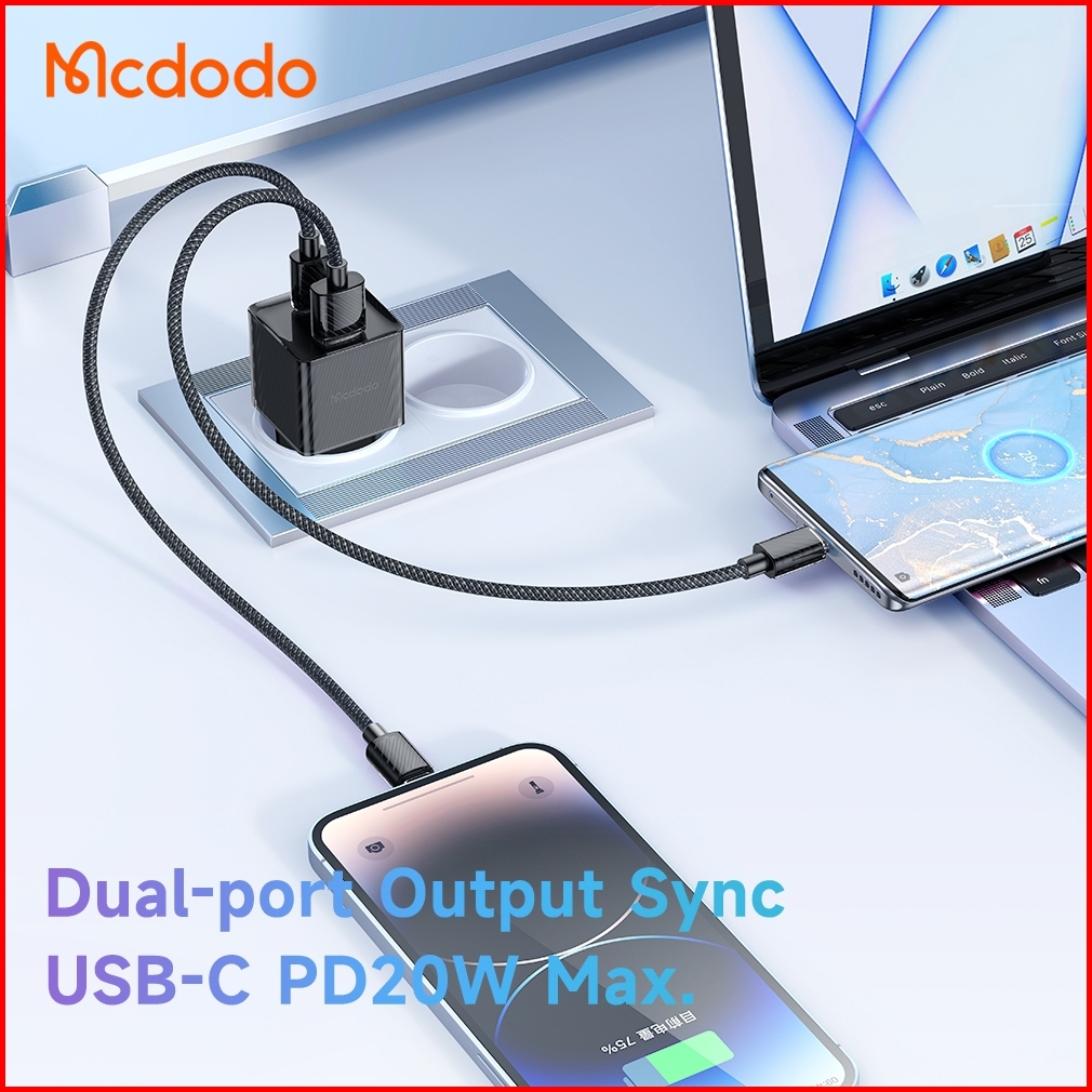 Mcdodo Adaptor Kepala Charger Dual Port Usb Type C Fast Charging 20w 33w Max 47w