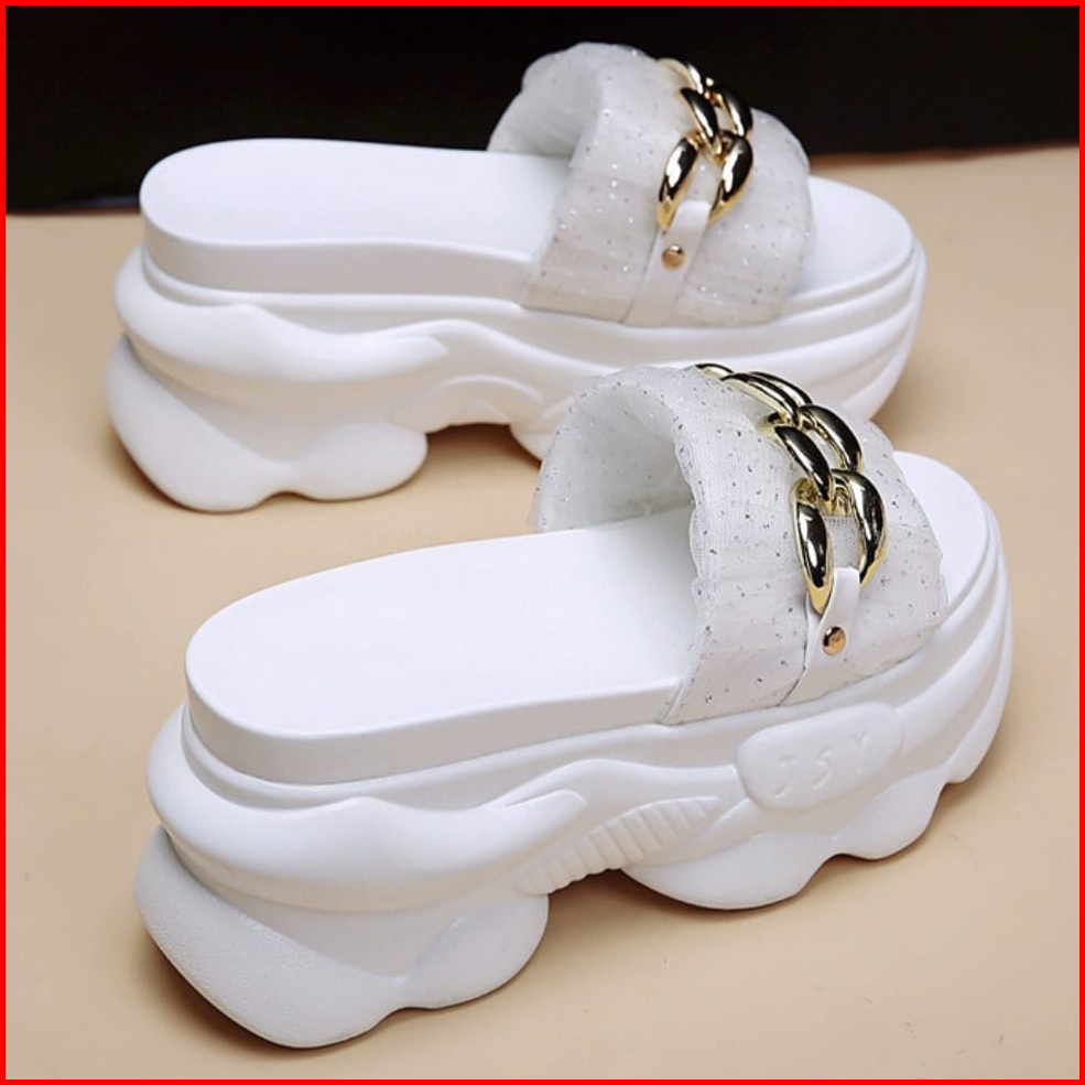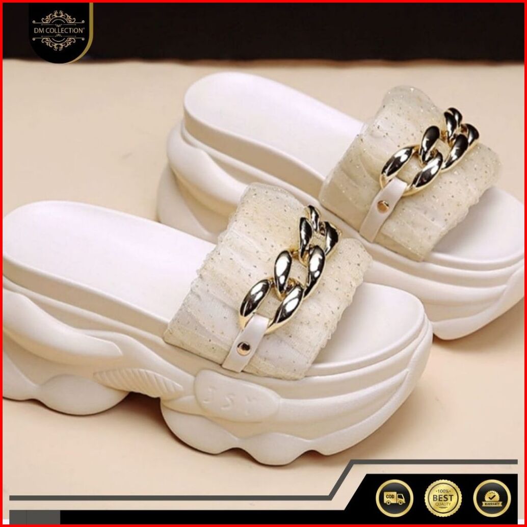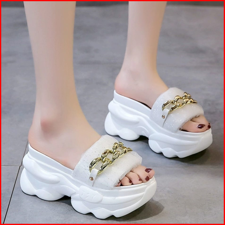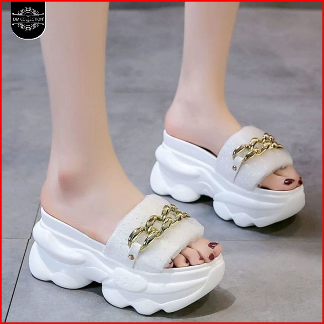 Dm-shop Sendal Wedges Claudia Wanita Kokop Variasi Jaring Rantai Wedges Wanita Hak Tebal Platrfom Fs 282