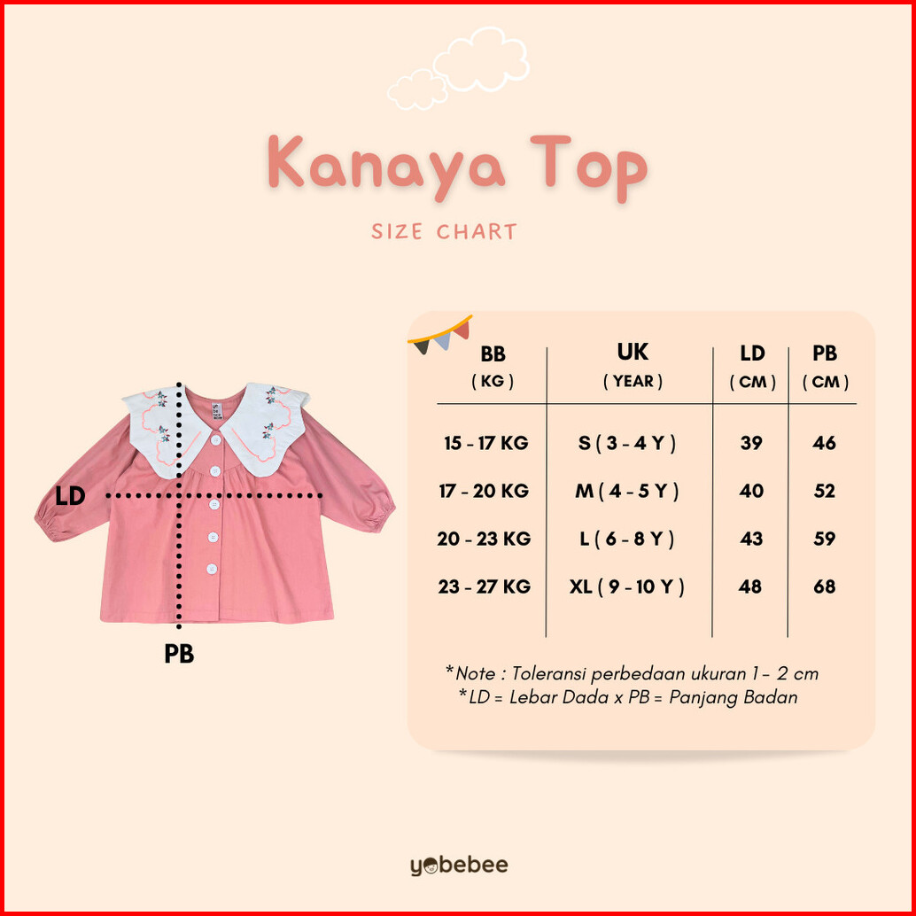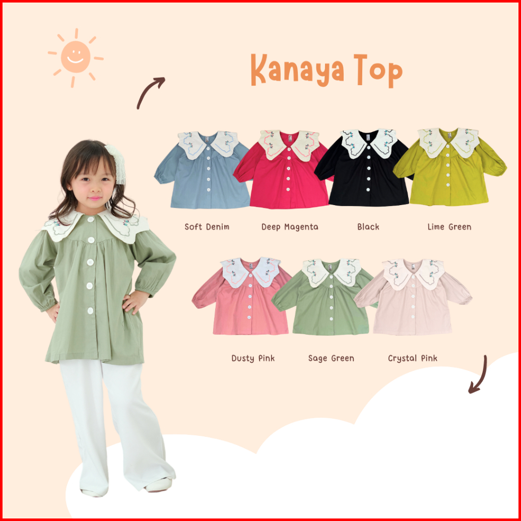 Yobebee Kanaya Top Atasan Anak Perempuan Usia 3 4 6 9 Tahun Baju Anak Cewek Polos Tangan Panjang