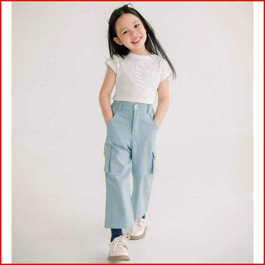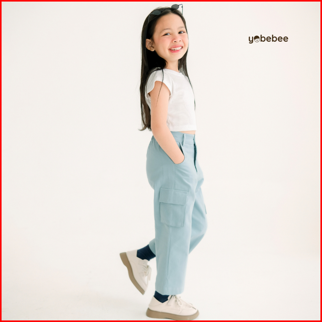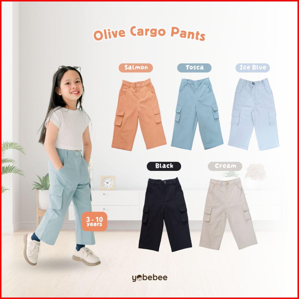 Yobebee Olive Cargo Pants Anak Perempuan Usia 4 6 7 9 Tahun Bawahan Pants Casual Santai Anak Cewek