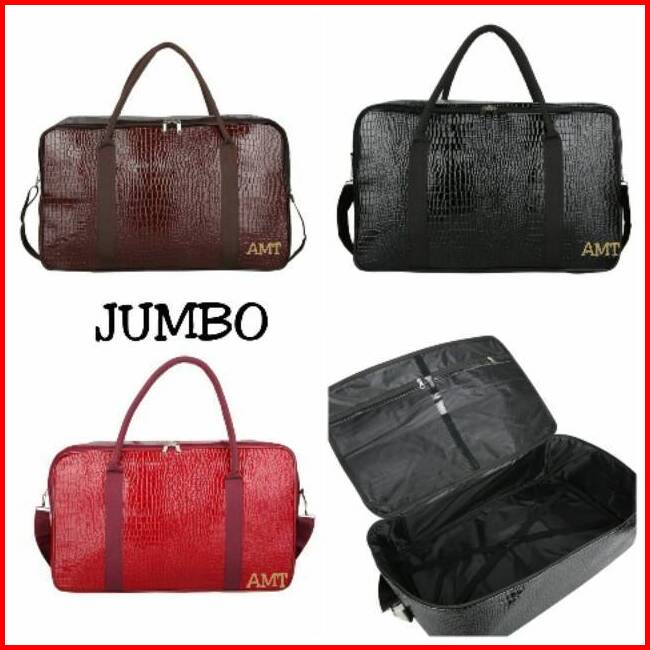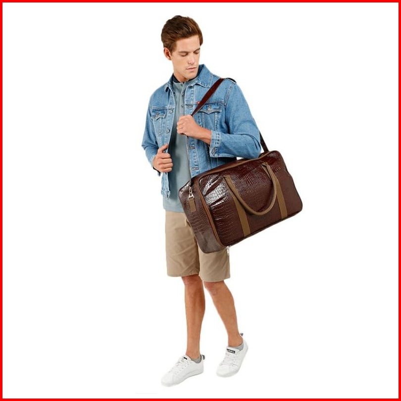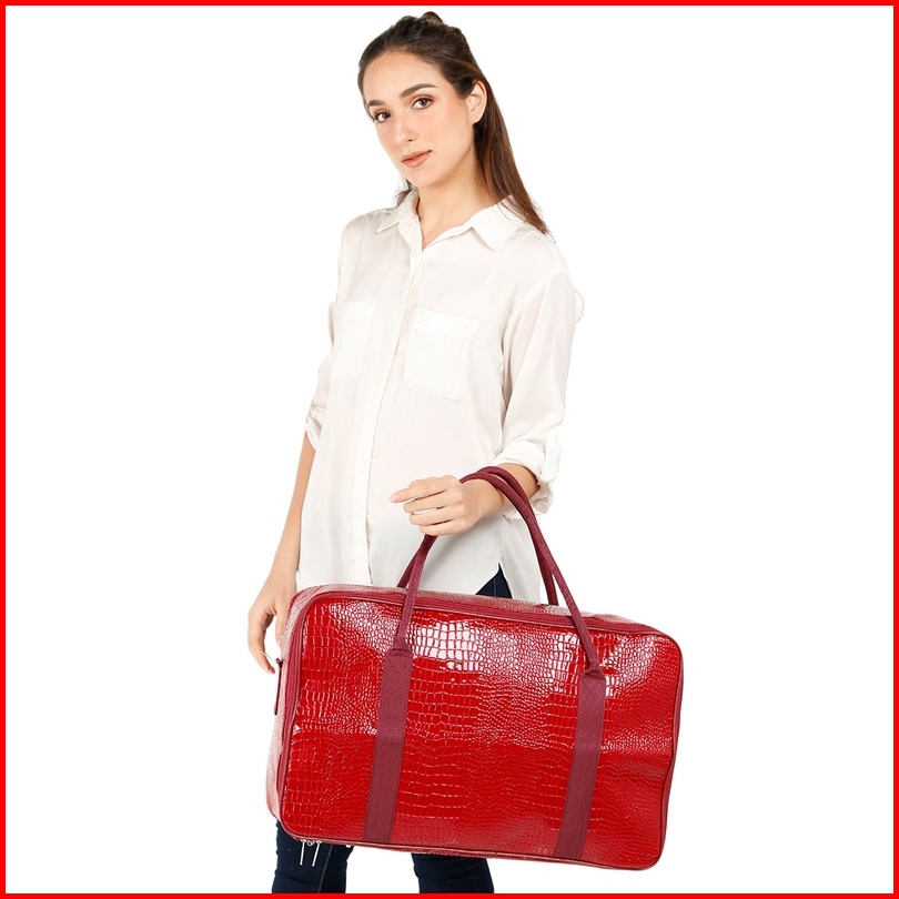 Tas Travel Bag Jumbo Callista Croco 55cm 22inch Kulit Sintetis Buaya Waterproof Tali Selempang Panjang