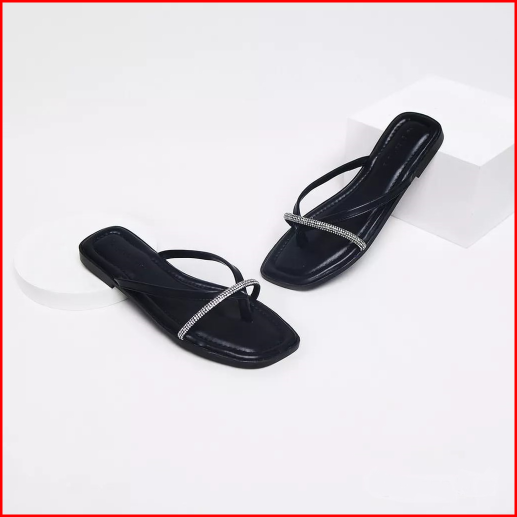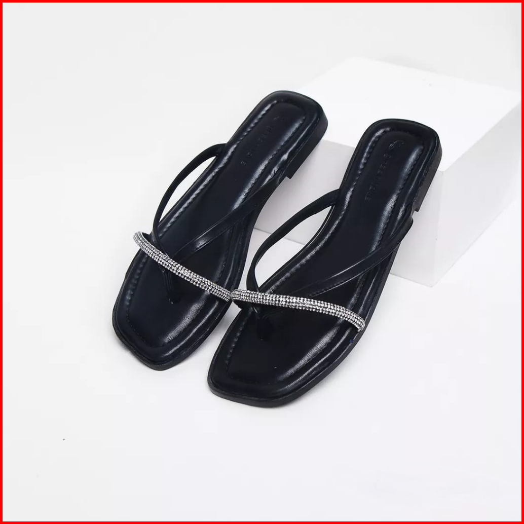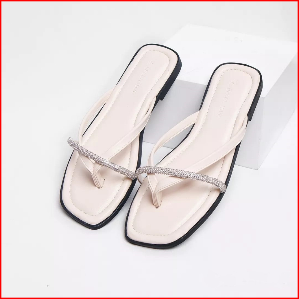 Aorora - Sandal Wanita Miami Jepit Palang Blink Kristal Size 37- 40 Sandal Empuk Kekinia Sendal Wanita Flatpom Lussy San