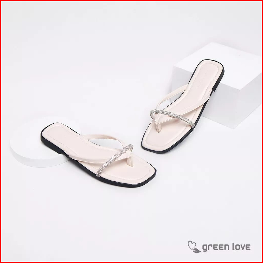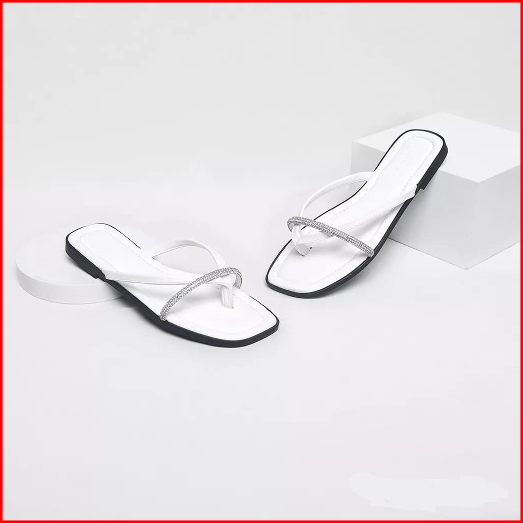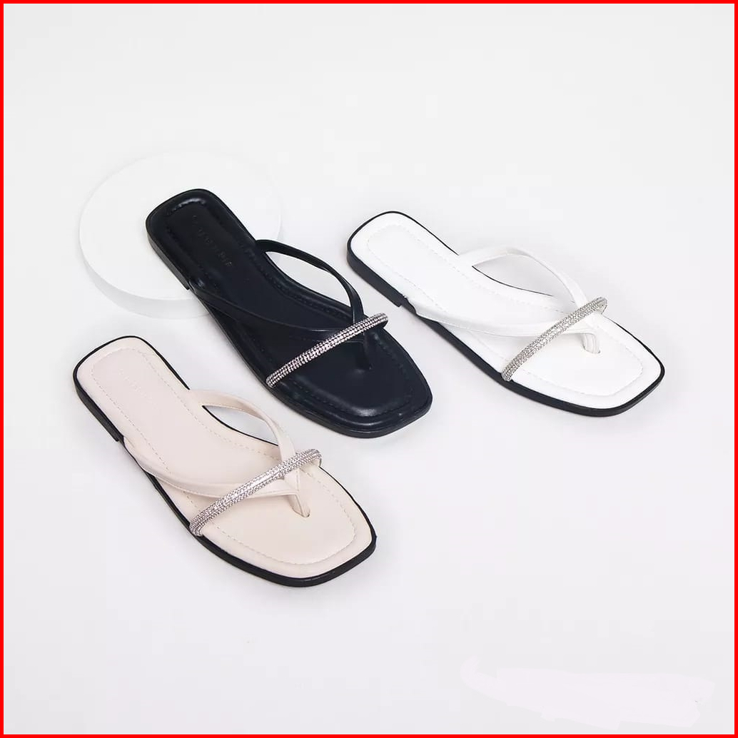 Aorora - Sandal Wanita Miami Jepit Palang Blink Kristal Size 37- 40 Sandal Empuk Kekinia Sendal Wanita Flatpom Lussy San