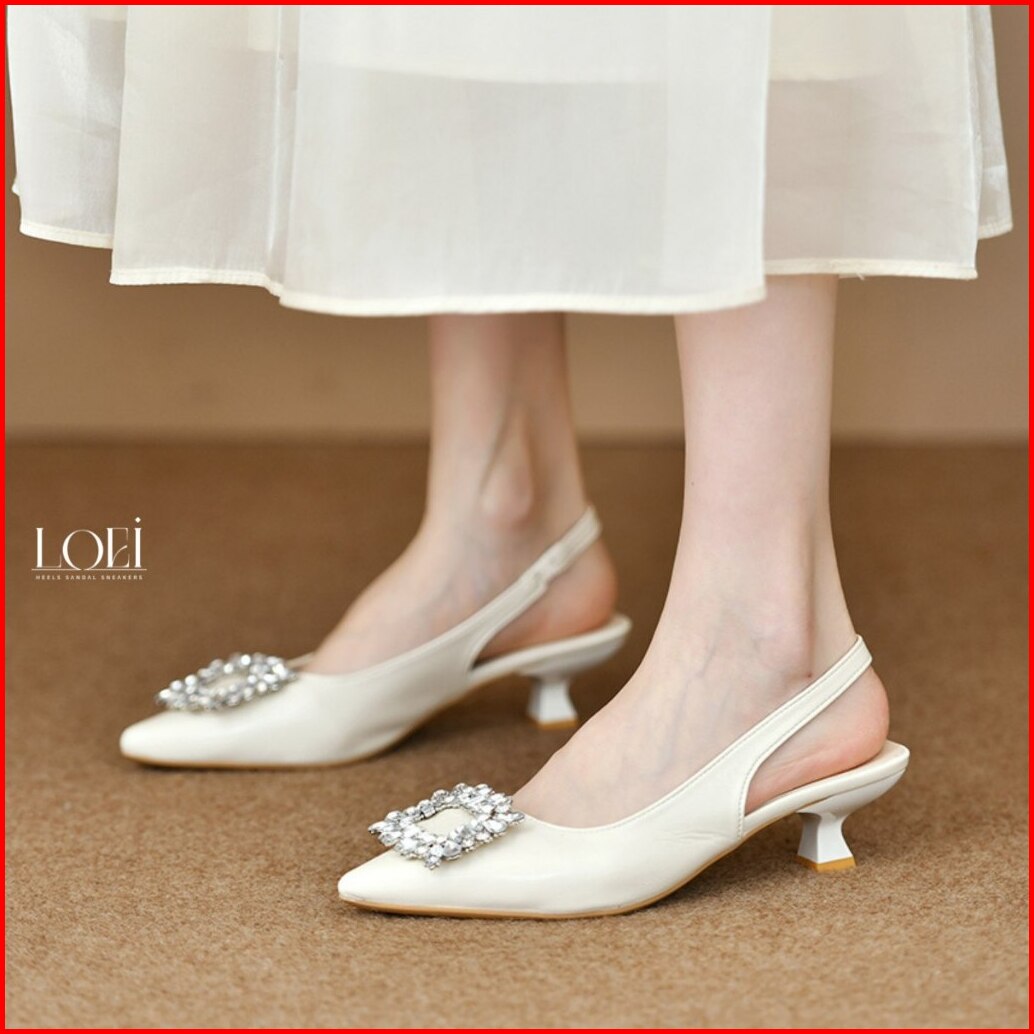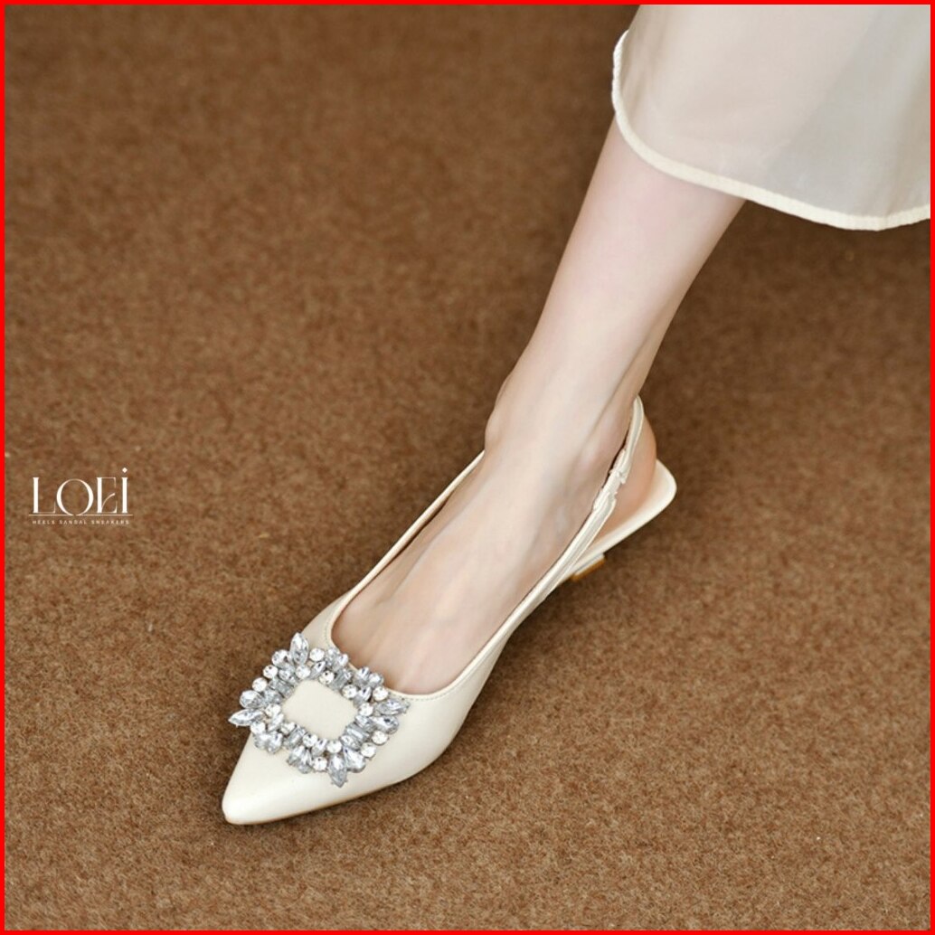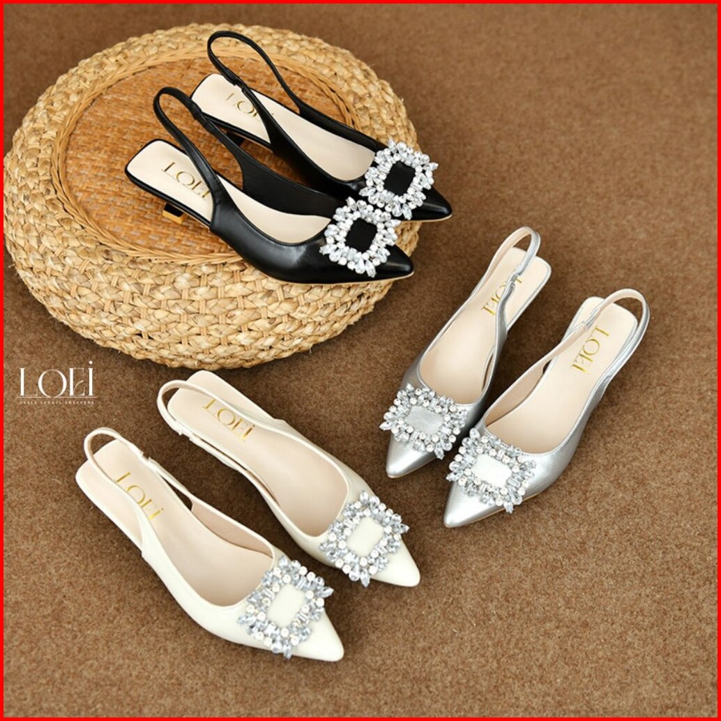Loei Christy Heels Elegant Wanita Sepatu Pesta Slingback Cantik Hiasan Kristal 3571