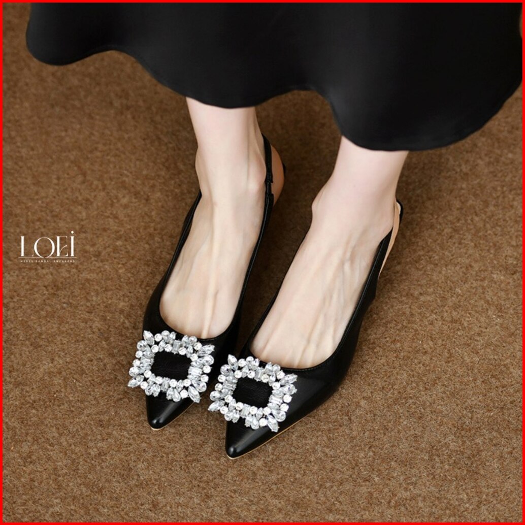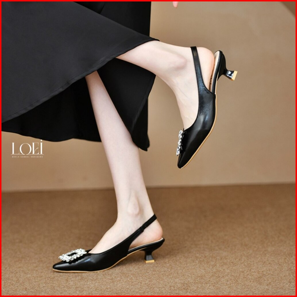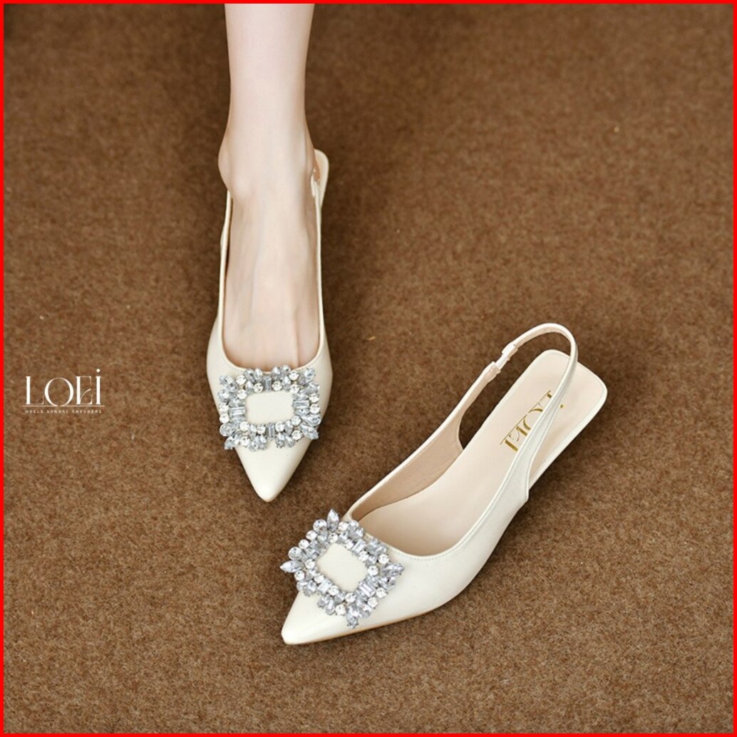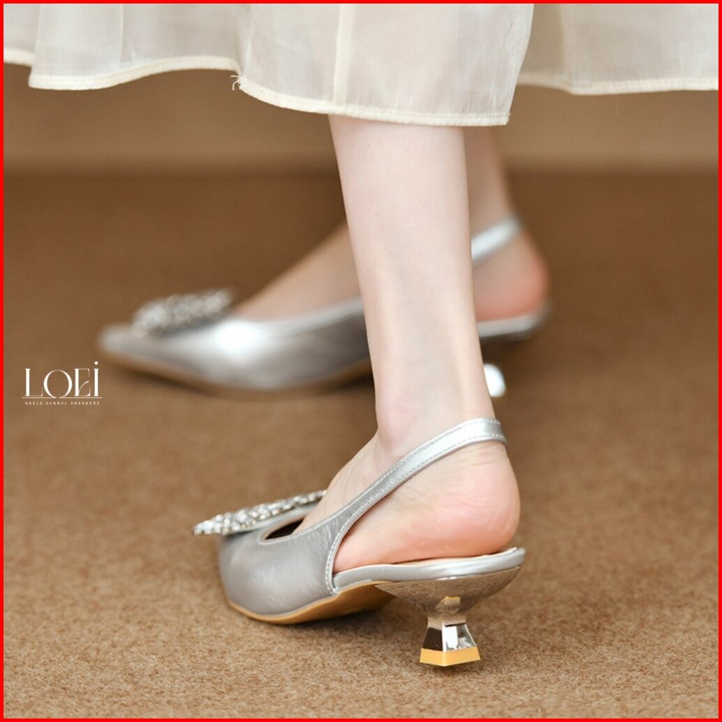 Loei Christy Heels Elegant Wanita Sepatu Pesta Slingback Cantik Hiasan Kristal 3571