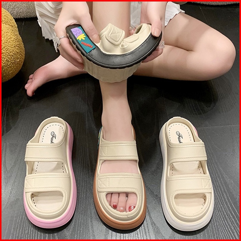 Sandal Wanita Wedges Ban Dua Import Terbaru Sendal Selop 2023