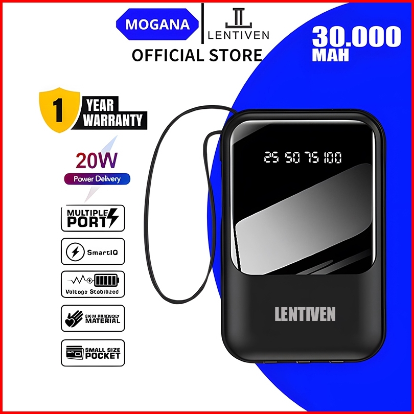 Mogana Lentiven Powerbank 30000 Mah Fast Charging Ukuran Kecil Mini Size 4 Usb Led Display