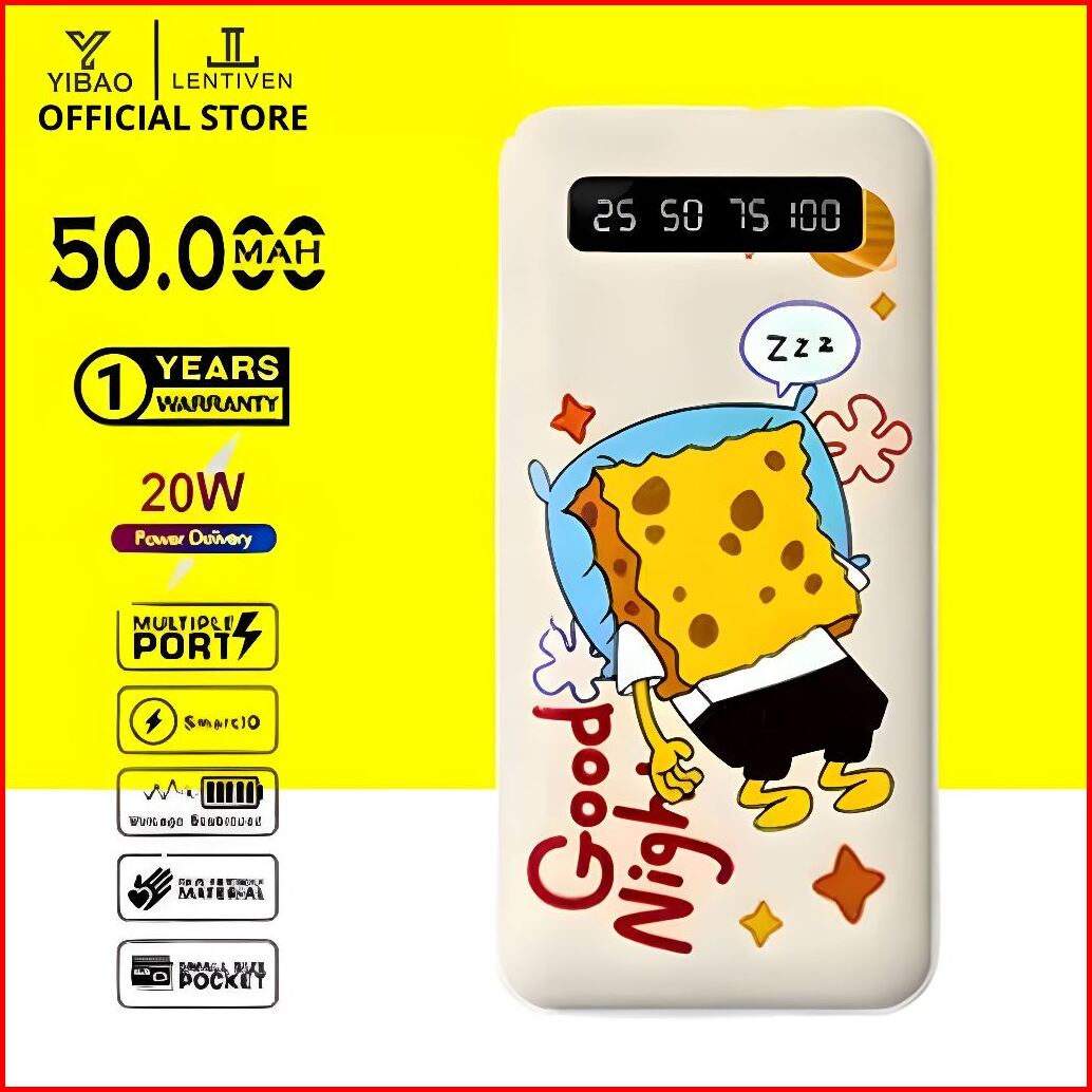 Yibao Lentiven Powerbank 50000 Mah 4 Kabel Full Capacity Mini Dual Usb Portable Fast Charging