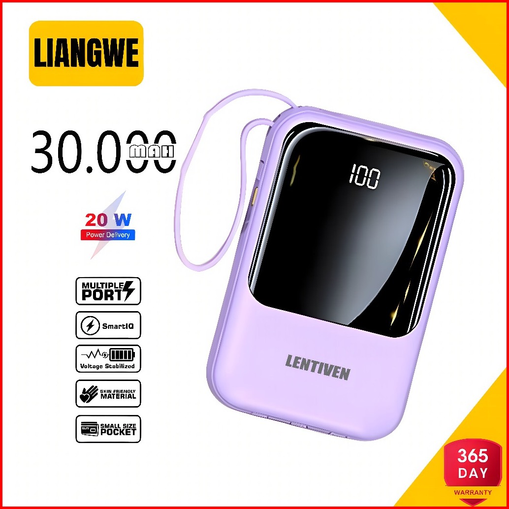 Liangwe Lentiven Powerbank 30000mah Mini With 4 Kabel Usb Fast Charging